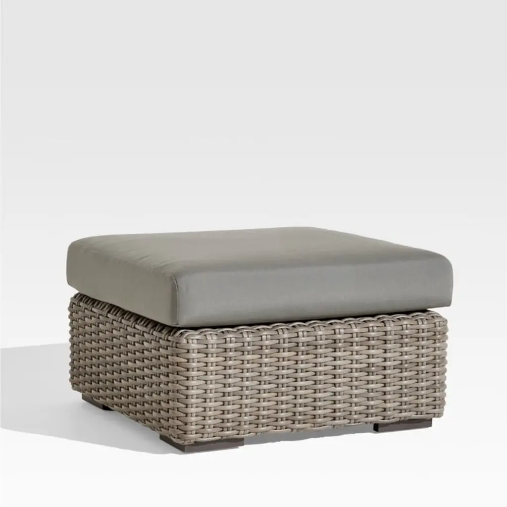 Our bold, modern Abaco ottoman is crafted of weather-resistant resin wicker that's handwoven with a chunky, textural weave. The wicker's grey-brown shades replicate the nuanced color of well-worn rattan.
