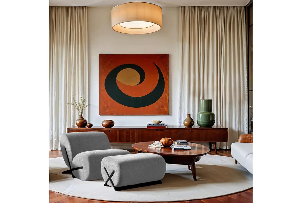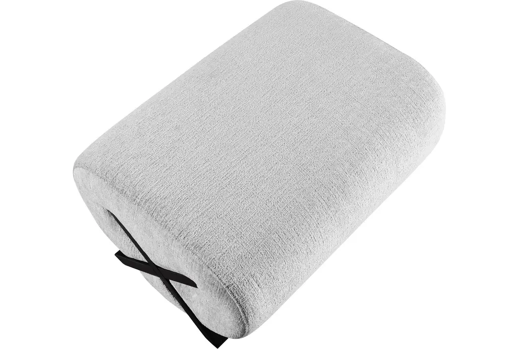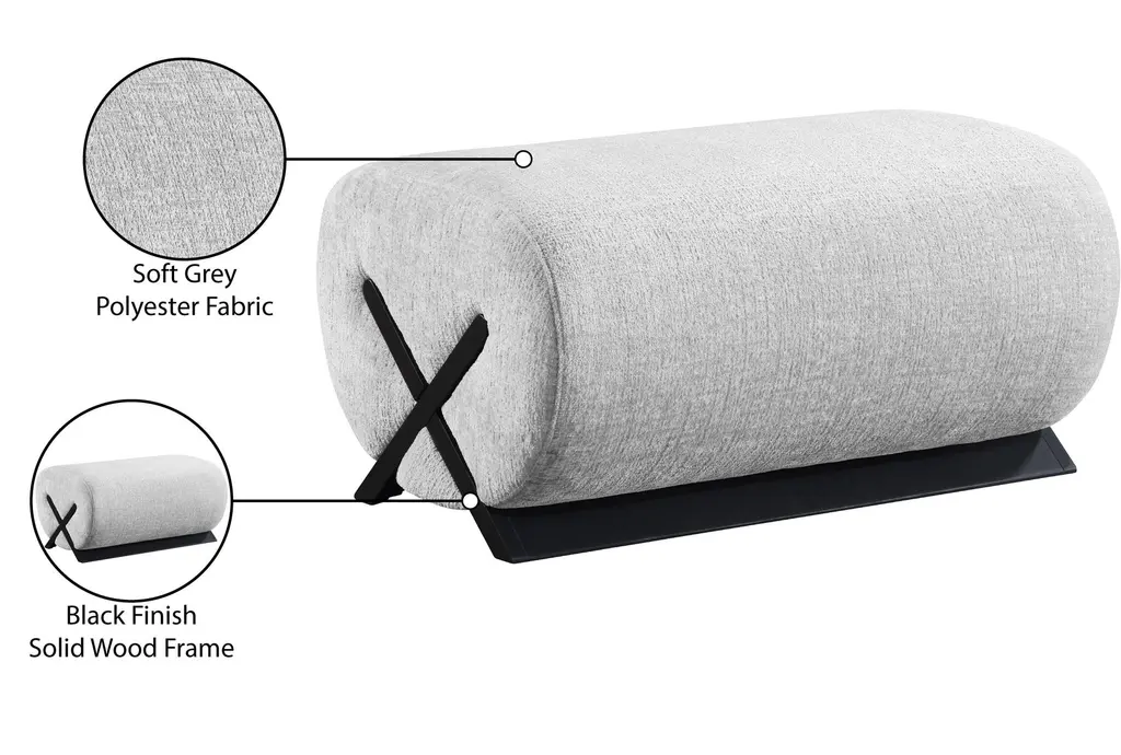 Akira Grey Fabric Ottoman brings purposeful comfort to the living room with a plush foam core that cushions without losing its shape. Upholstered in polyester outdoor fabric, it resists wear and cleans up easily, while a rubberwood base provides low-profile, steady support. Use it as extra seating, a footrest, or a surface for trays to add flexible function to your seating area.