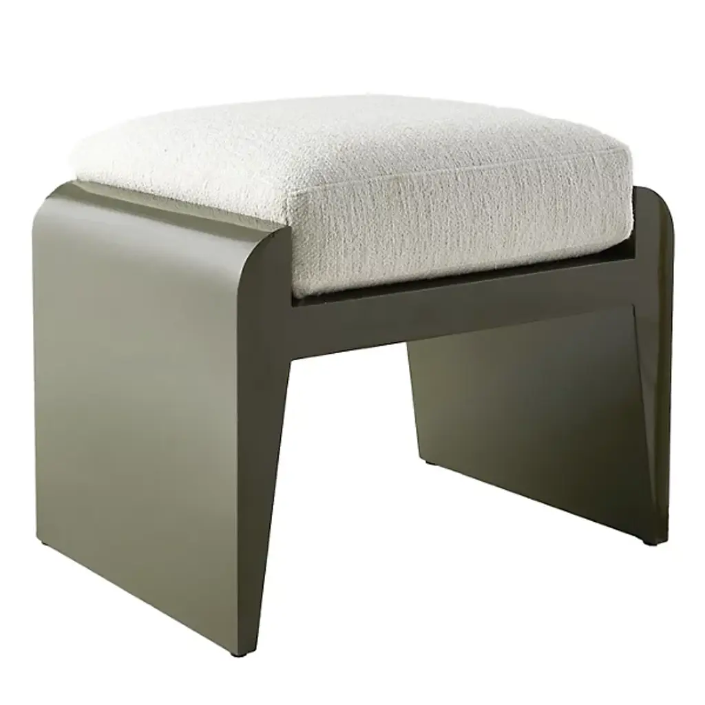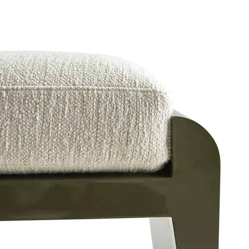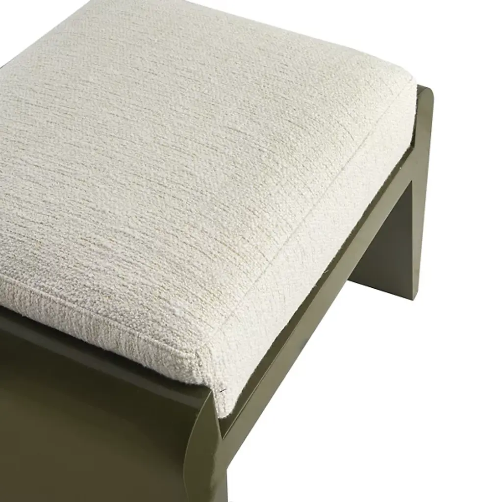 The Alanna Ottoman from Arteriors is a contemporary piece that enlivens your space. Made with a lacquered composition, this ottoman showcases clean lines and curves, embodying a streamlined aesthetic that complements various spaces. Alanna provides comfort in the form of a cushioned top. This versatile ottoman can be placed in your living room or bedroom, effortlessly combining form and function. It brings a touch of elegance and relaxation to your home.