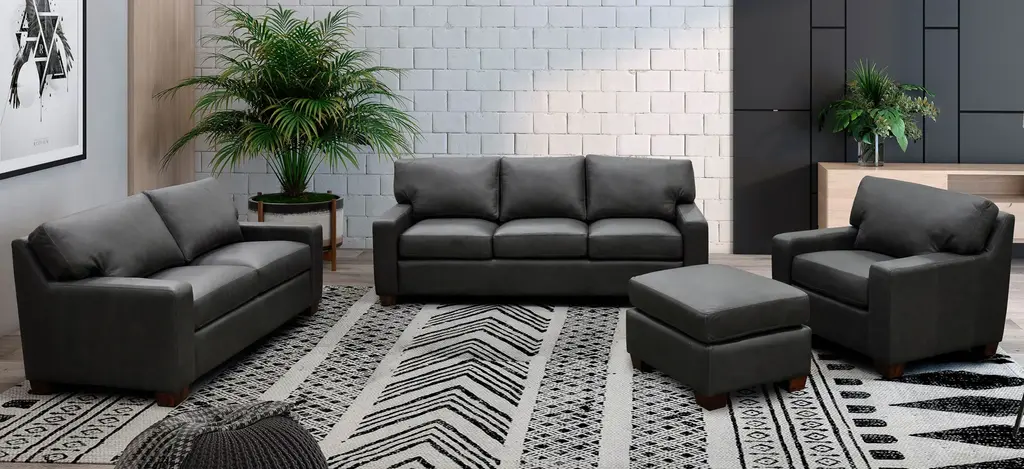 The Albany Ottoman is proudly made in the USA from 100% top grain leather and is built to last with its Limited Lifetime Frame & Spring warranty. It begins with sleek, transitional track arm styling which is a perfect compliment to any d_cor. It's then upholstered in a soft and subtly two-toned Aniline Plus top grain leather which retains the natural beauty and feel of the leather hide while providing superior protection against everyday use. Double stitched seams offer the utmost in strength & durability, while fully padded side & back panels add structure and quality.