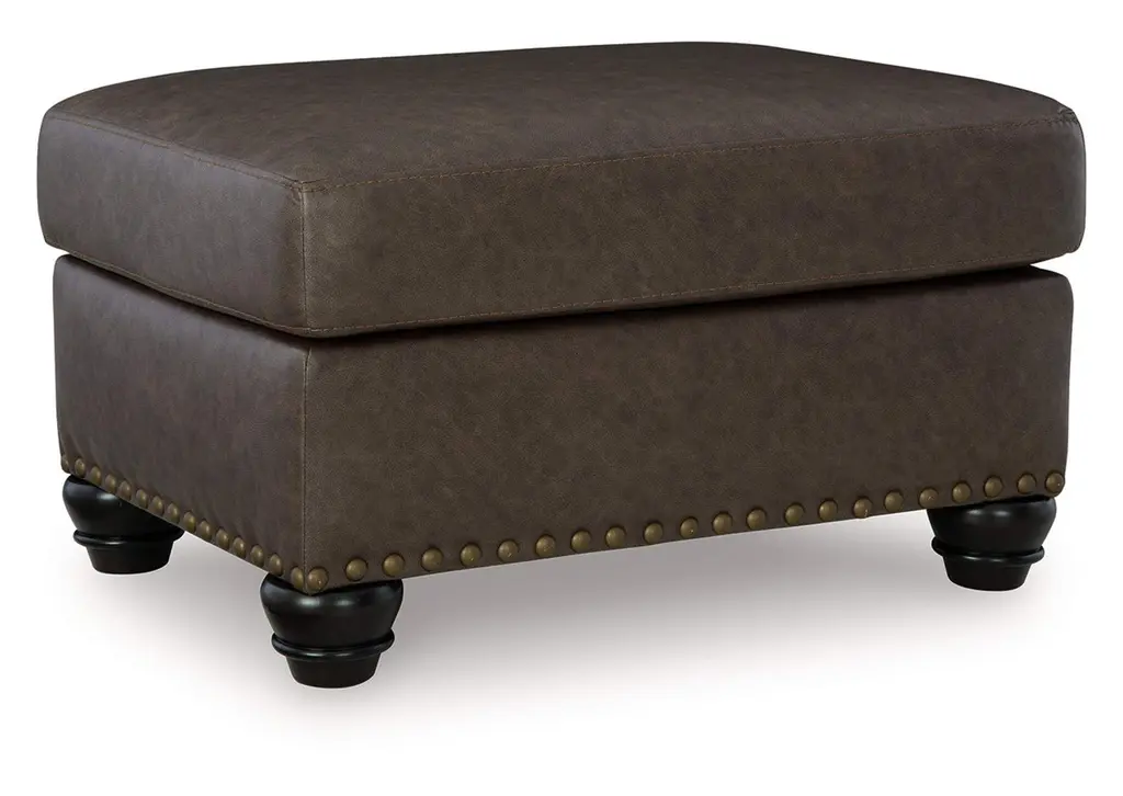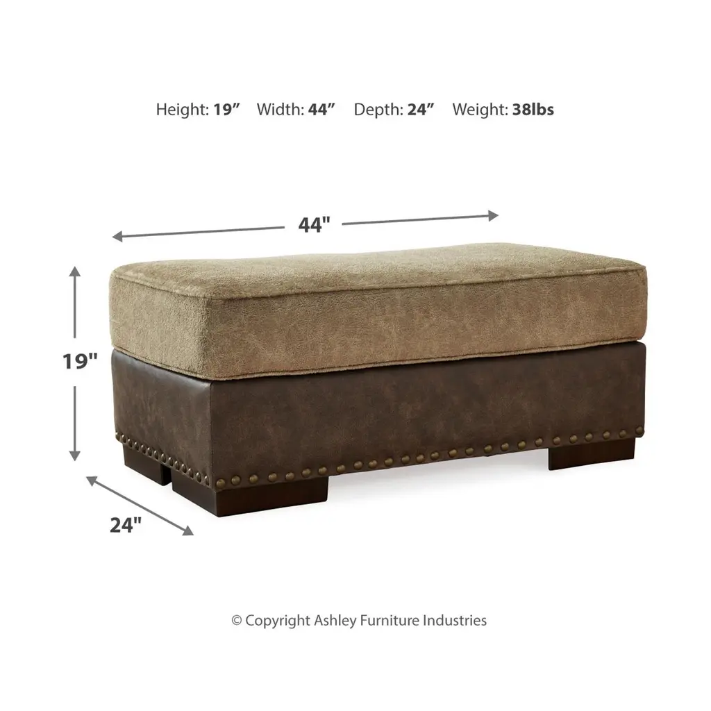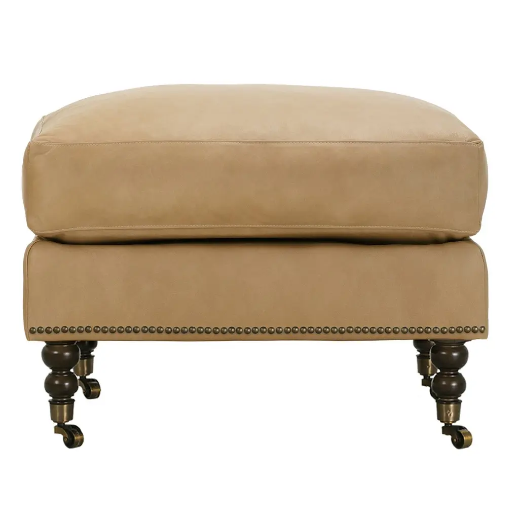 Punctuated by a subtle band of nailhead trim, the cool, contemporary style of this ottoman is perfect for those who love the look of leather. Two textural tones provide twice the style and comfort—and incorporate an added layer of visual interest.