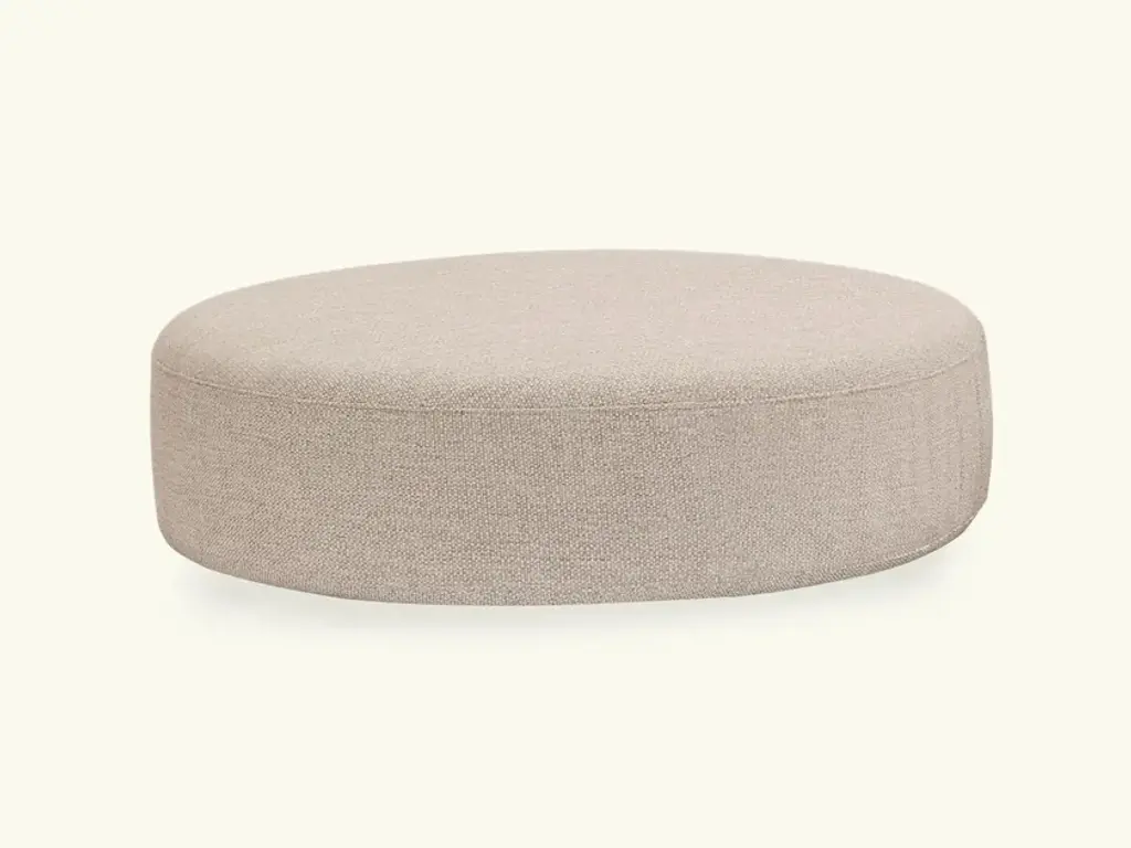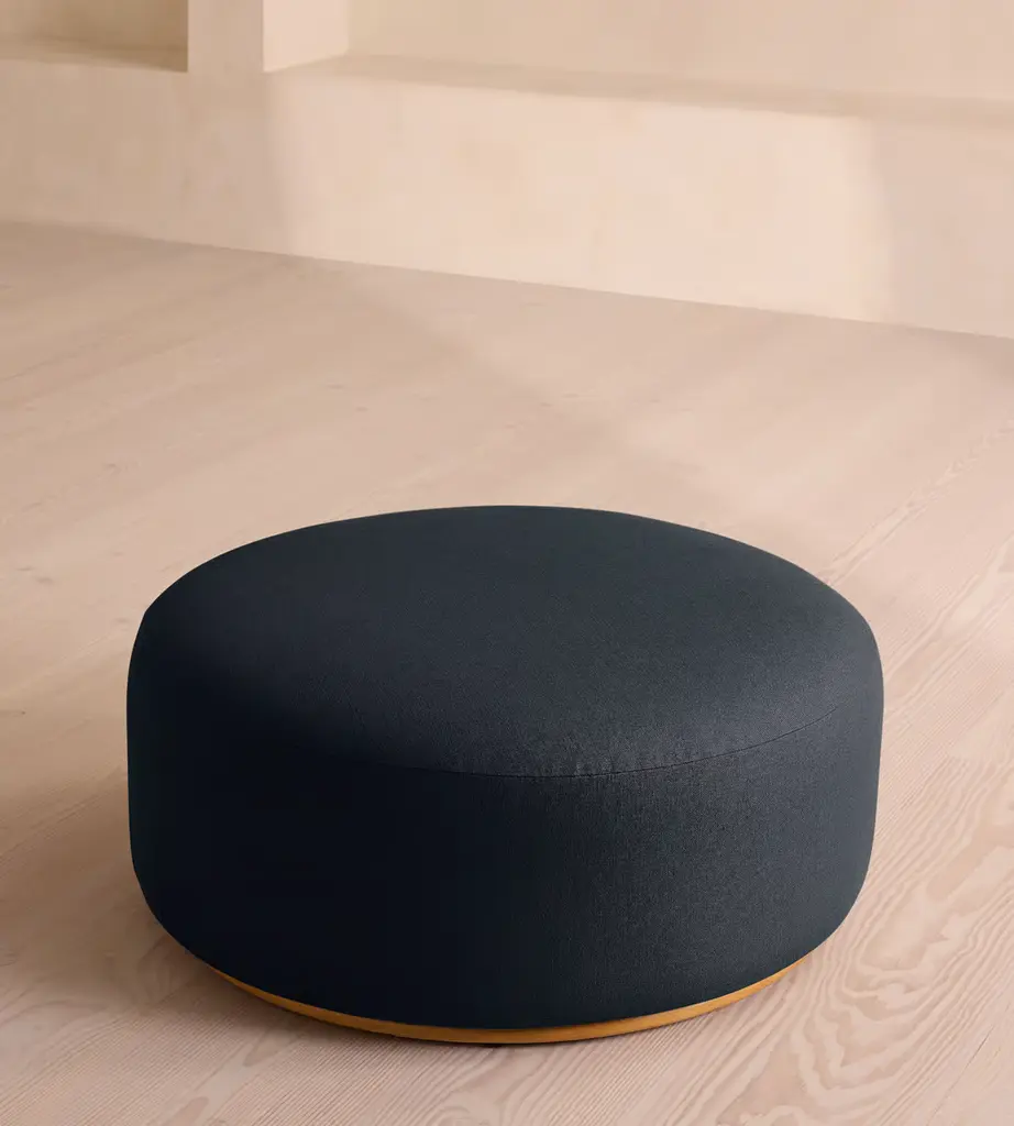 A large, curved silhouette upholstered in linen is spacious enough to let guests put their feet up, or provide extra seating in social spaces. The curved silhouette of the Aline ottoman is wrapped in linen in a range of bespoke colors to mirror the social seating areas seen in Soho House Stockholm.