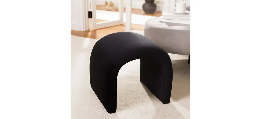 A dash of luxury for the modern minimalist, this Amiela Ottoman is the perfect finishing touch for today's contemporary interiors. Amiela's plush black velvet is lavishly comfortable and beautifully spotlights its boldly curved silhouette, seamlessly accenting any room's color scheme.