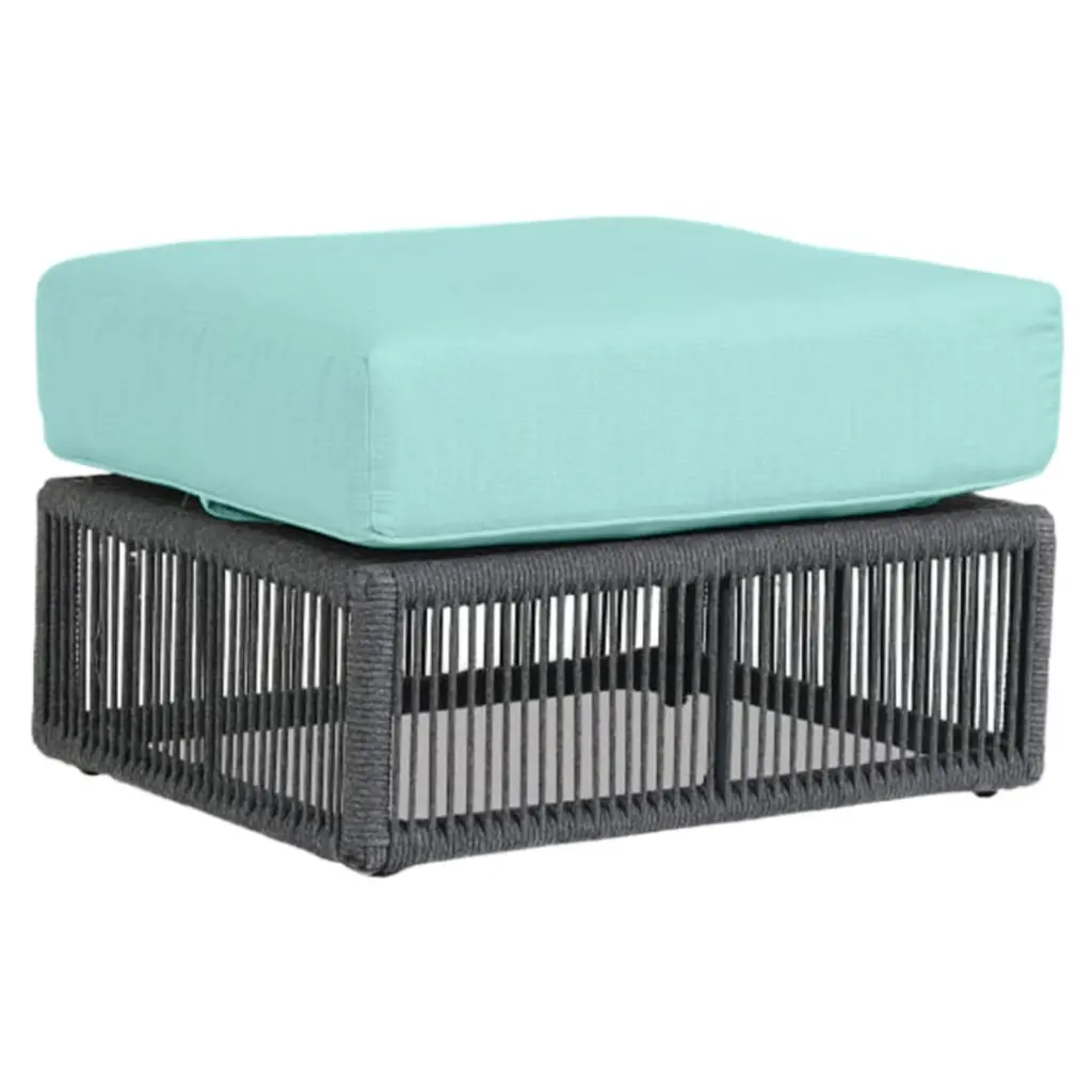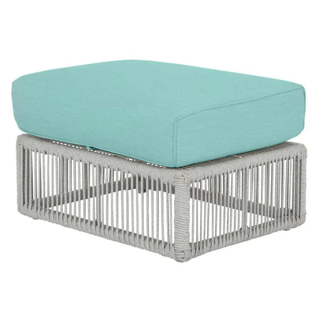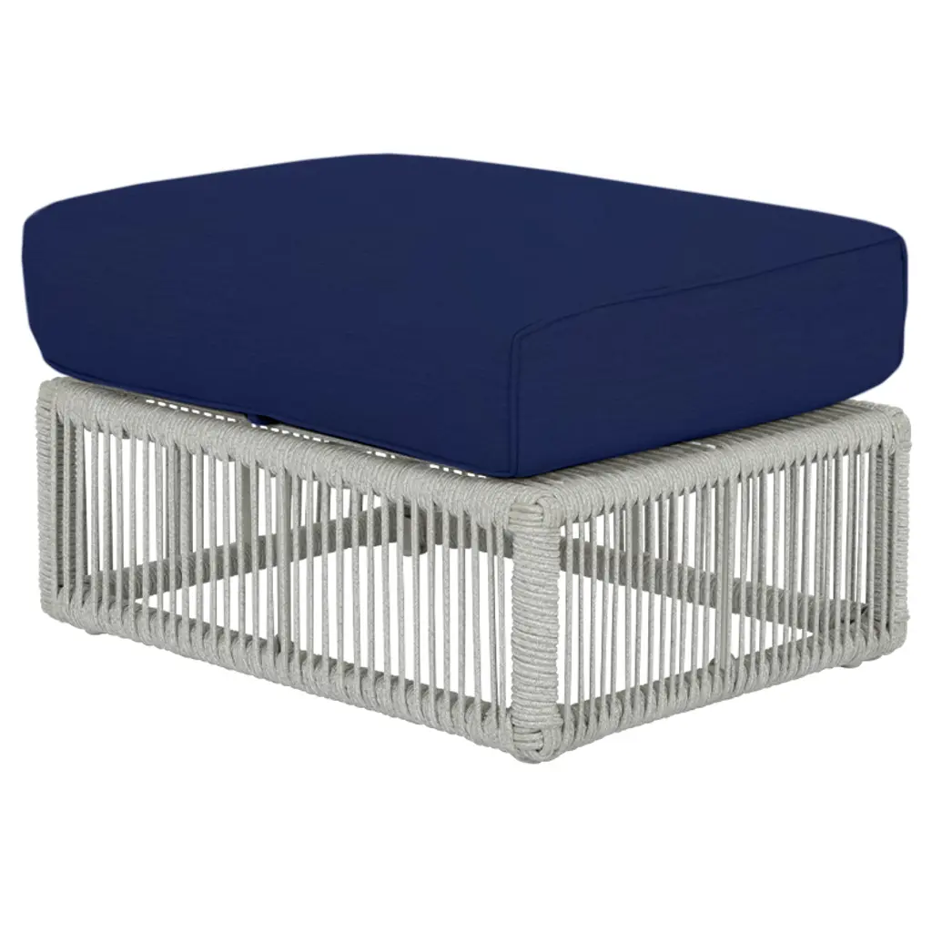 The Amira Ottoman features a robust aluminum frame, expertly hand-wrapped by artisans with premium all-weather olefin rope. It comes with a plush cushion for supreme comfort. The fully welded, powder-coated aluminum frame is wrapped in weather-resistant, colorfast outdoor rope. The ottoman includes weather-resistant, high-resiliency foam cushions and non-marking plastic glides.