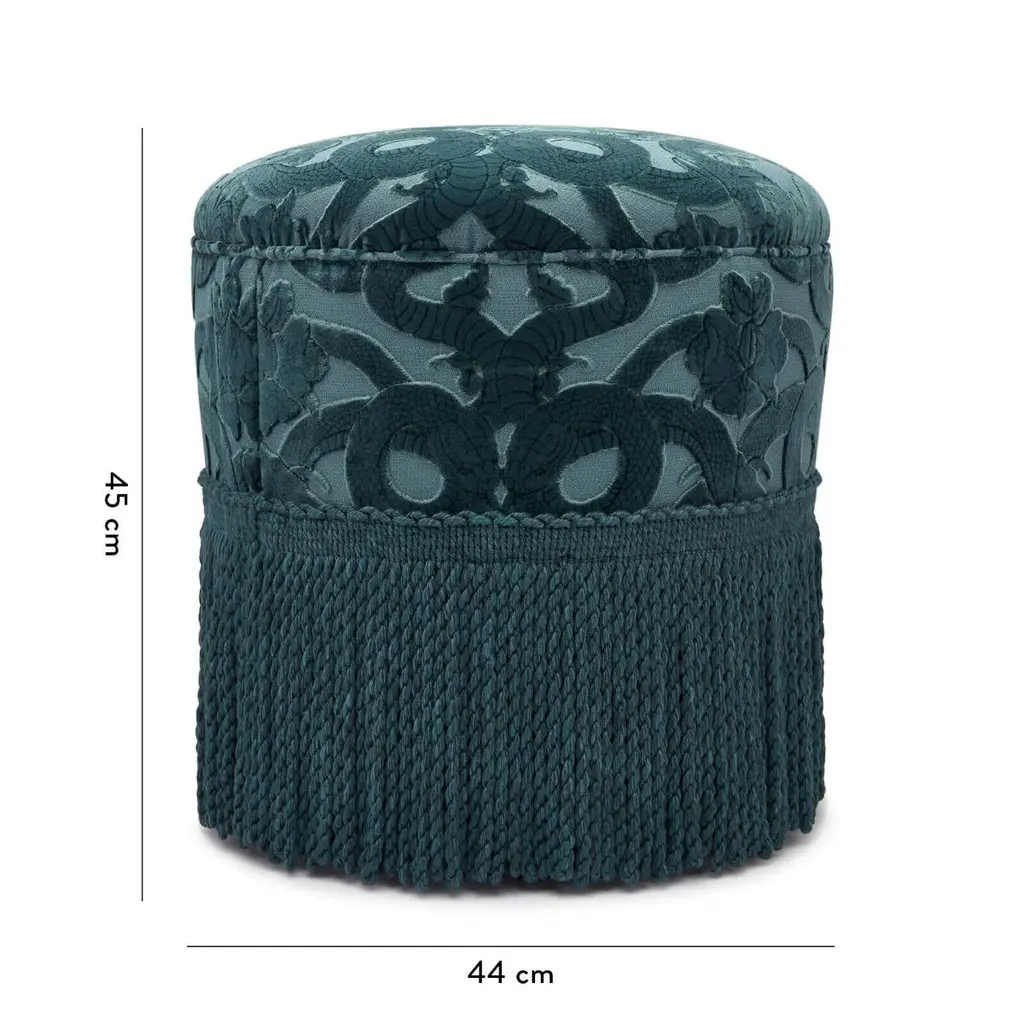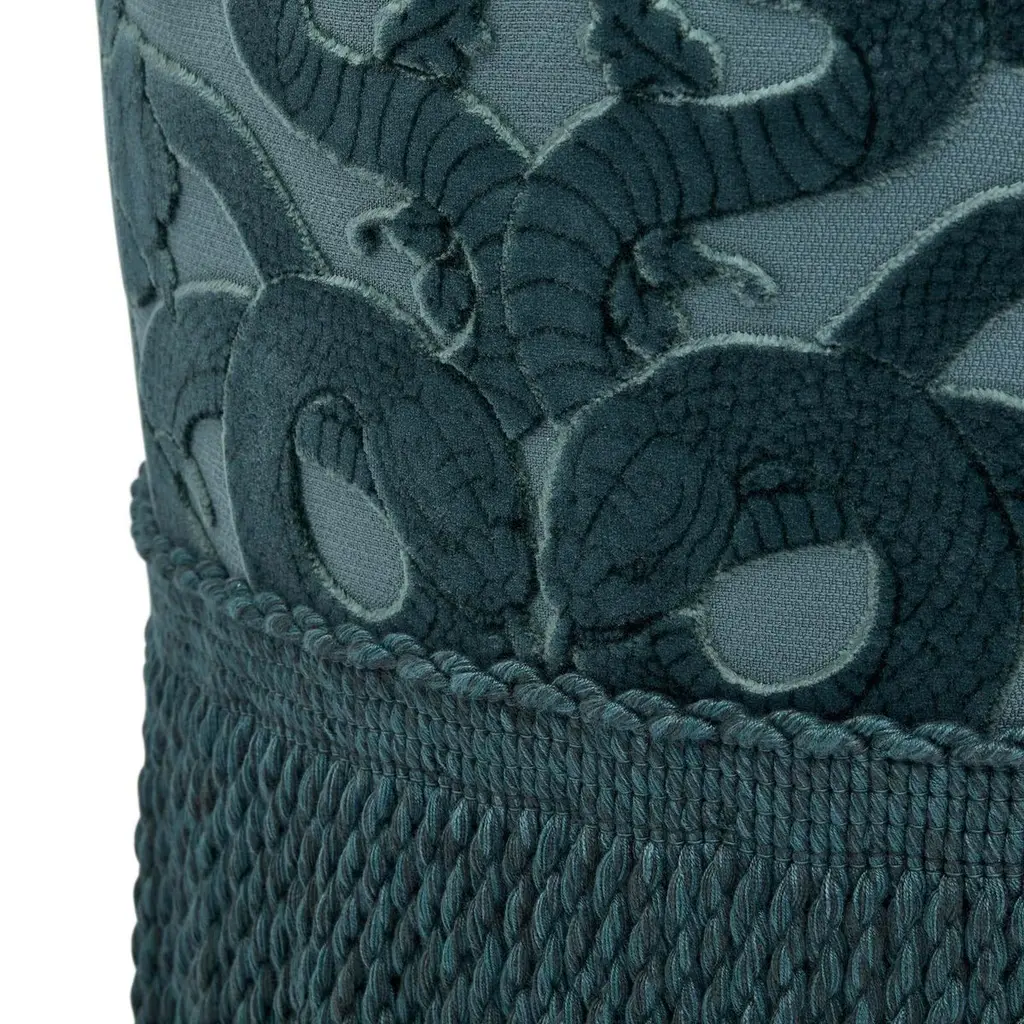A trinity of House signatures intertwine on the ANACONDA Bottoman: our symbol of the snake, slithering across cut-velvet, the opulent shade of 'Petrol' blue and (of course) the design itself; a tongue-in-cheek take on the ottoman, crafted by the finest furniture makers in England.