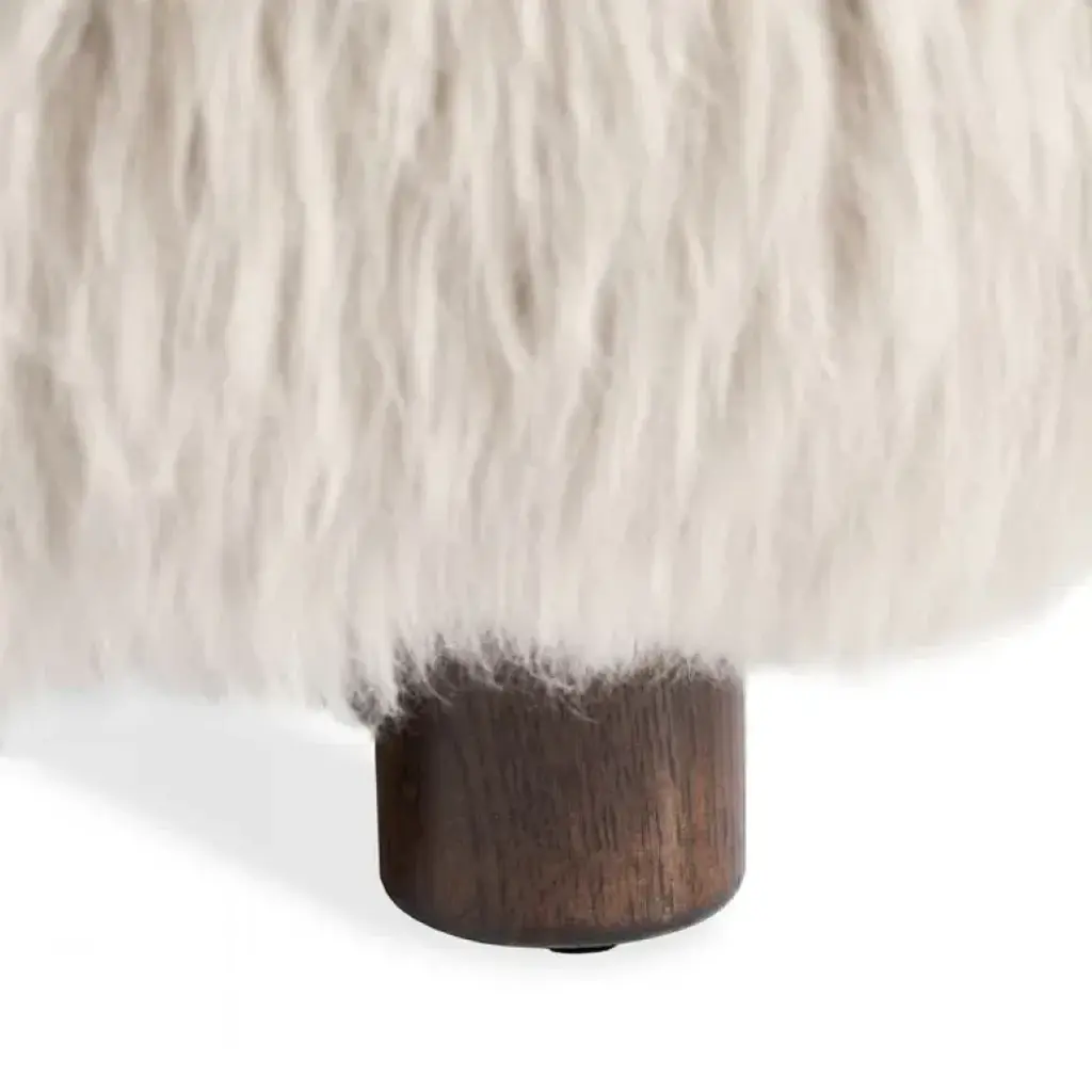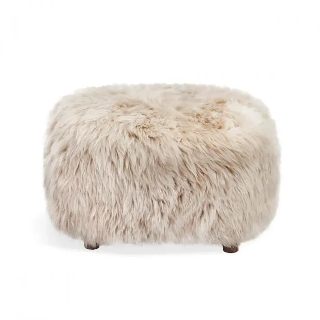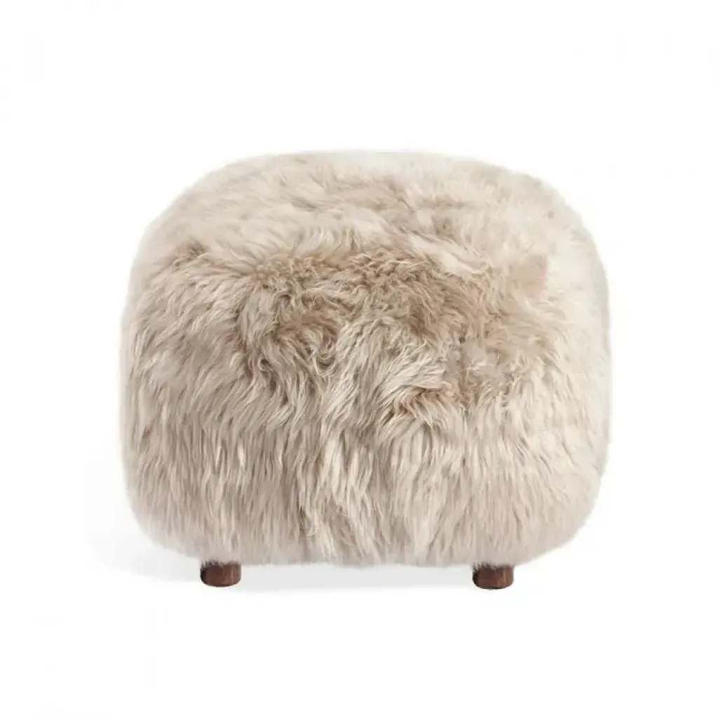 Sure to become a favorite perch, the Anders Ottoman beckons thanks to its abundantly plush Tibetan lambskin in morel taupe and wood frame in a walnut finish. This item is genuine sheepskin. Subtle variations in coloration are to be expected and add to the uniqueness and charm of each piece.