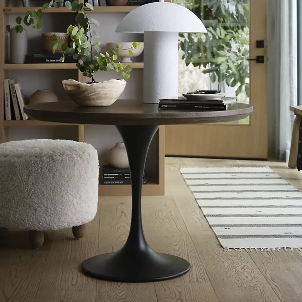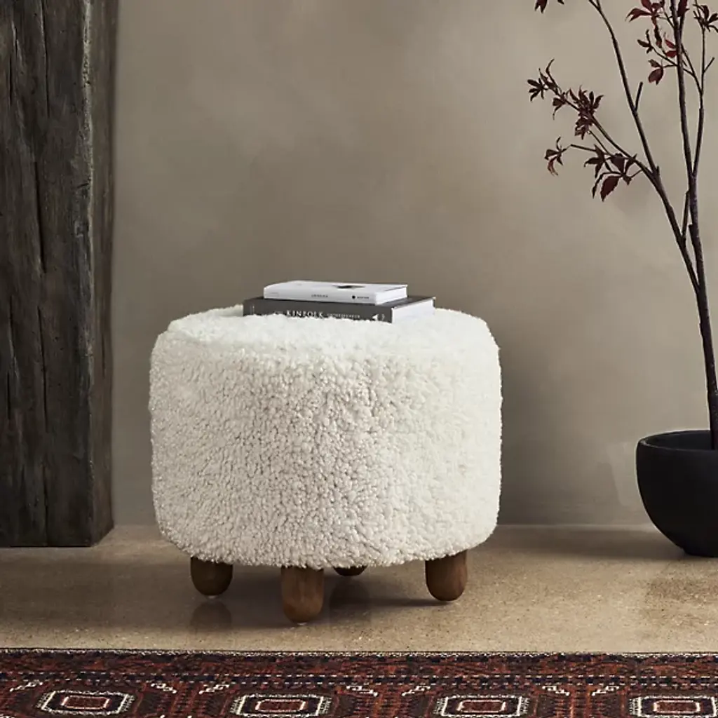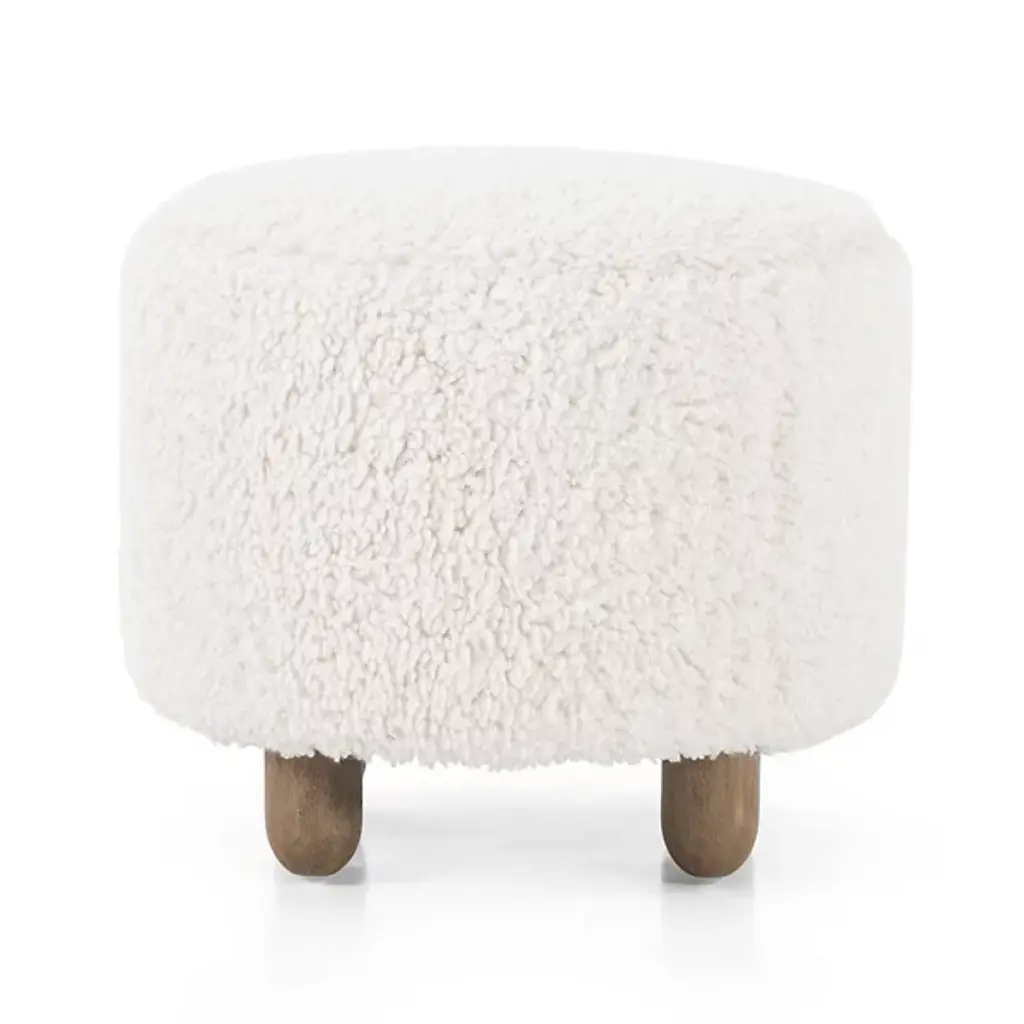 The Aniston Ottoman from Four Hands has a round shape, which brings a touch of elegance to your space. The discreet, contoured legs provide stability while enhancing its modern aesthetic. Crafted from solid parawood, your ottoman reflects enduring quality. The 100% polyester upholstery provides durability while giving you a comfortable seating experience. Bring a sense of playfulness to your living with this versatile piece. Place this ottoman upon hard-surface floors with ease.