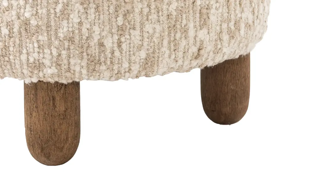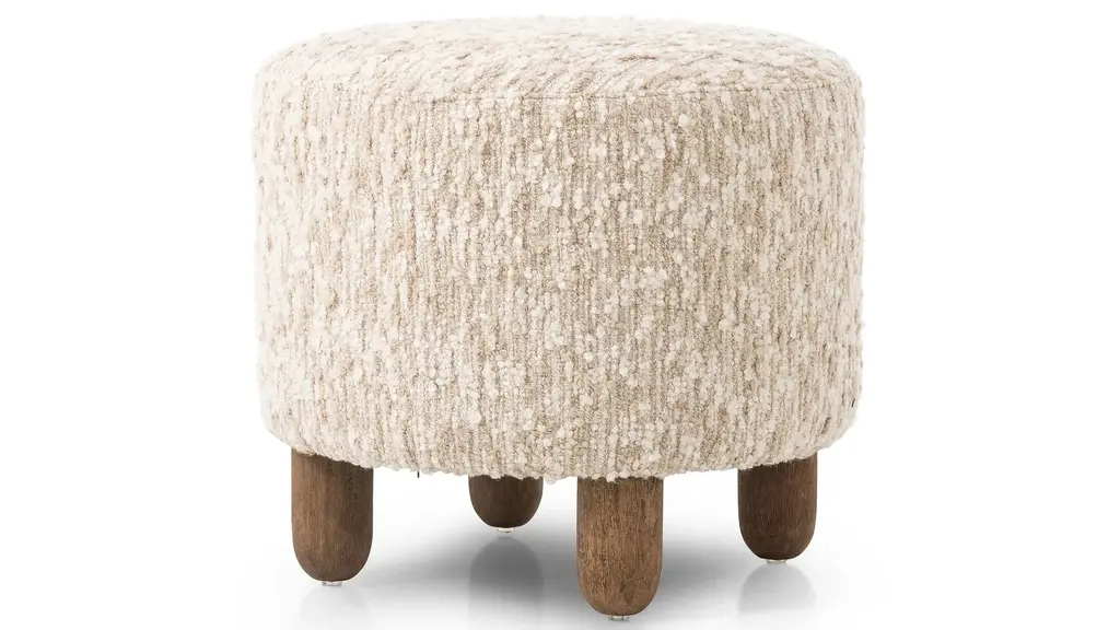 Place this Aniston Ottoman just about anywhere for a subtle retro vibe. The ottoman is upholstered in a faux Mongolian shearling with a high pile fur and the parawood legs are wirebrushed for a warm, vintage feel.