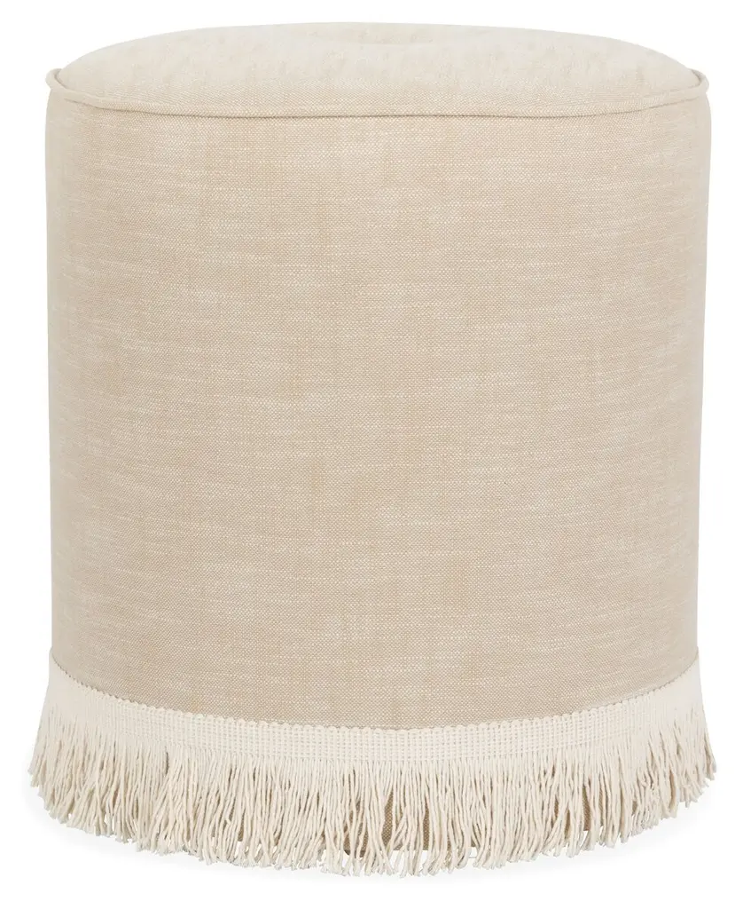 Introducing the Ann Ottoman, a versatile piece designed to enhance any setting in your home. Whether it’s paired with your favorite chair, used as a small table or stool, or placed at the foot of your bed, this ottoman adds a touch of elegance to any space. Its delicately crafted fringe trim provides a stunning textural contrast to the upholstery. No matter where you place it, the Ann Ottoman promises to complete your decor with sophistication and charm. This exclusive piece is part of the Stoffer Home collection, crafted by Cloth & Company.