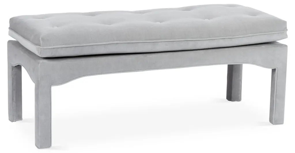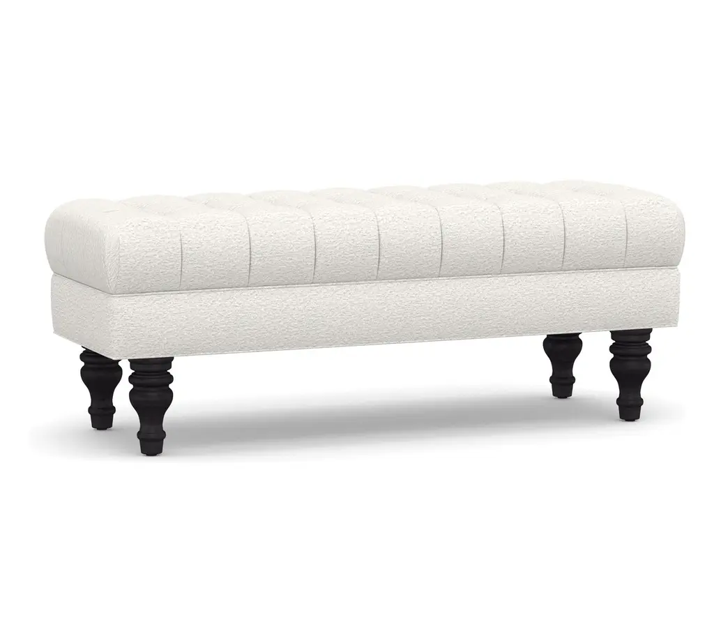 Exclusive to One Kings Lane: This tufted classic ottoman features a traditional turned leg with brass caster. It is upholstered in Crypton, an eco-friendly high-performance fabric that repels stains, spills, bacteria, and mold. Each piece is handcrafted by skilled artisans in High Point, NC and offers a lifetime warranty on the frame and suspension system.