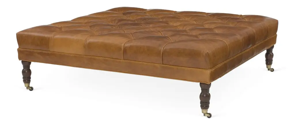 Exclusive to One Kings Lane, the Anna Square Cocktail Ottoman in premium-grade praline leather features a kiln-dried hardwood frame backed by a lifetime warranty and high-density foam for lasting comfort. Its supple leather and tailored square silhouette bring timeless sophistication to any space, serving beautifully as a coffee table, footrest, or statement accent. Finely turned legs on caster wheels protect hardwood floors from scratching and marring. Handcrafted by skilled artisans in High Point, North Carolina, the Anna embodies enduring craftsmanship and effortless elegance.