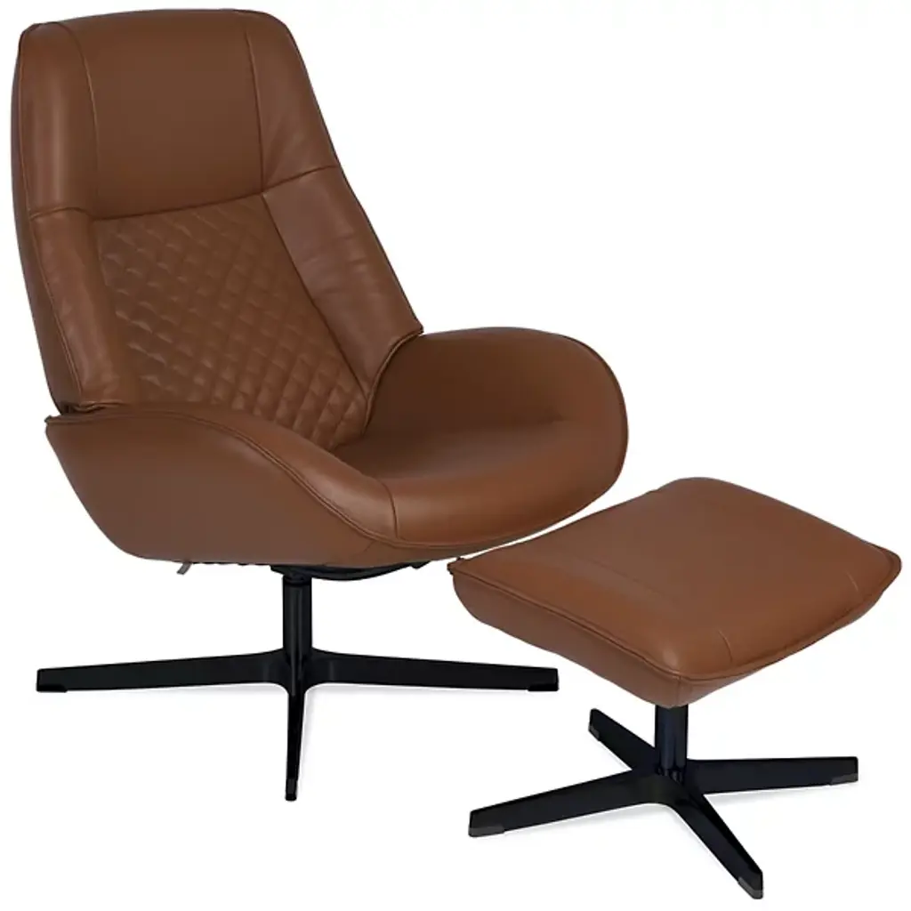 Ideal for your living room or lounge space, the Anselmo Recliner and Ottoman adds distinguished mid-century modern style. This classic style is made with a solid hardwood and bent plywood frame. Genuine leather upholstery is reinforced with button-tufting throughout. Plush cushioning is made more durable with sinuous spring suspension.