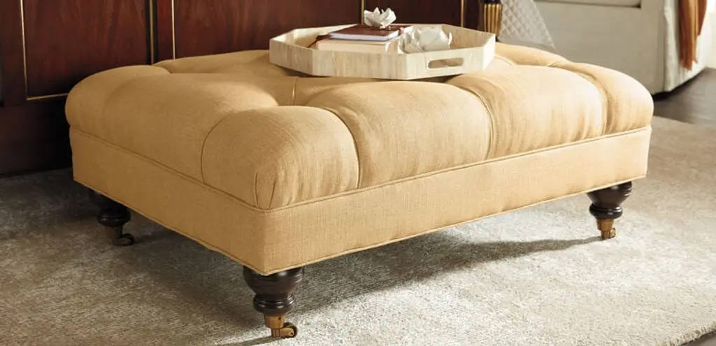 A convenient but elegant ottoman on wheels that goes where it's needed, while managing to look important anywhere. Like a well-tailored suit, its diamond tufted seat has a decisive and buttoned-up air. Available in leathers and fabrics.