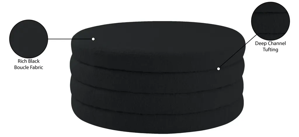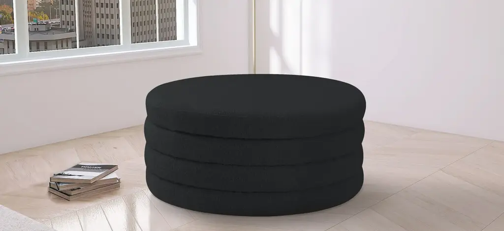 Liven up your living space with this Aphia Boucle Fabric Ottoman/Stool from Meridian Furniture. Featuring rich black boucle fabric upholstery, this ottoman offers softness to the touch and style to the eye.