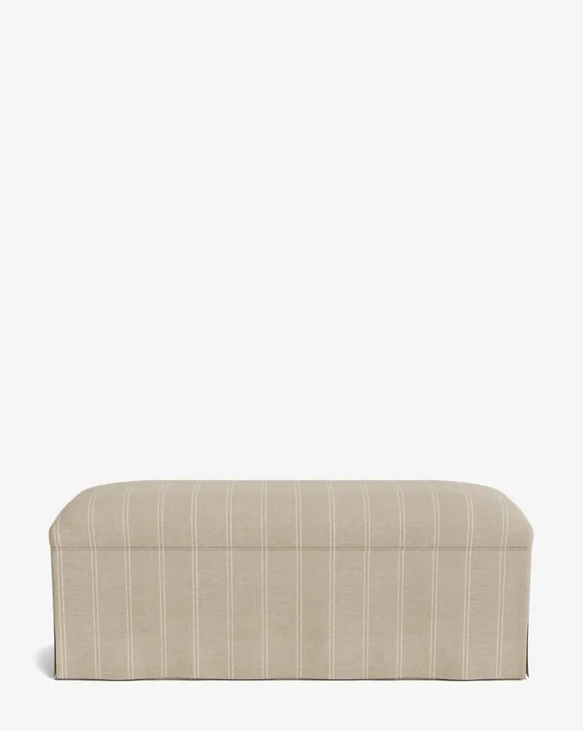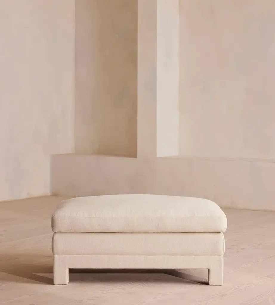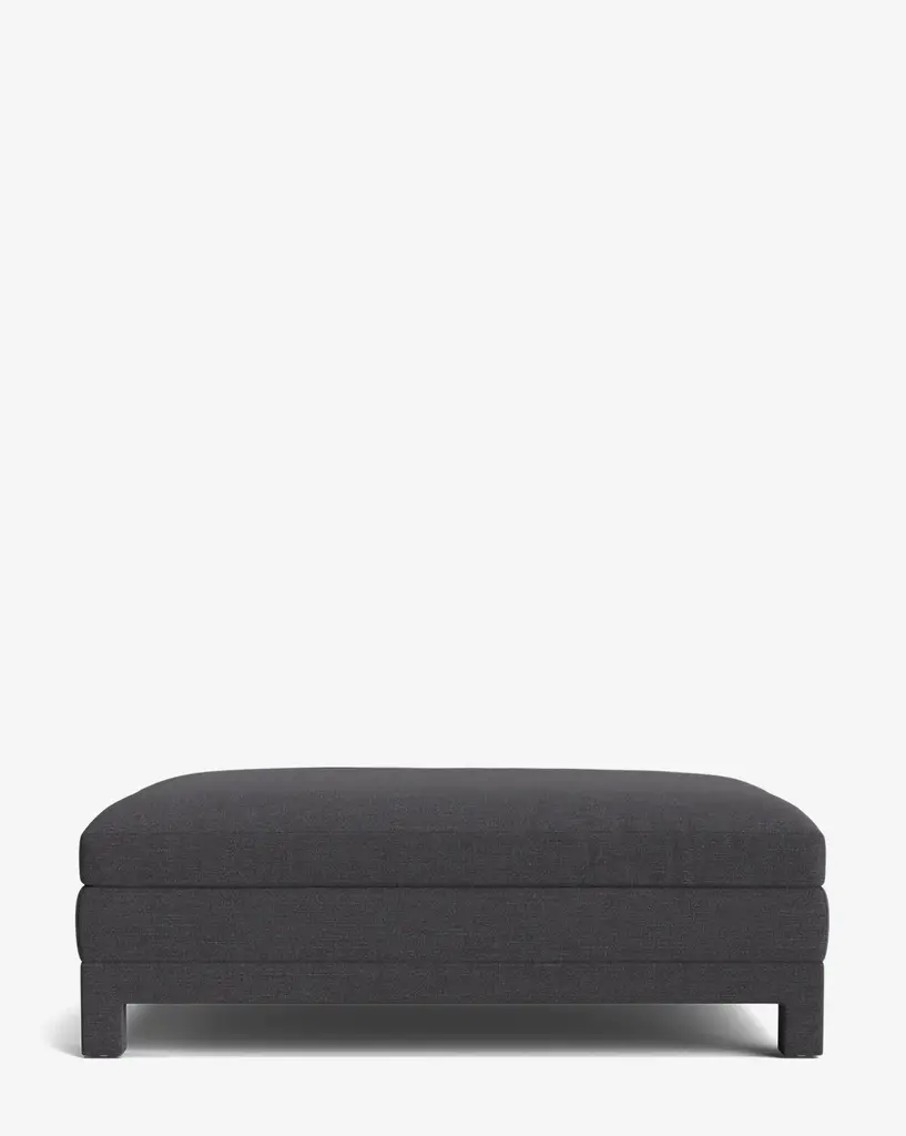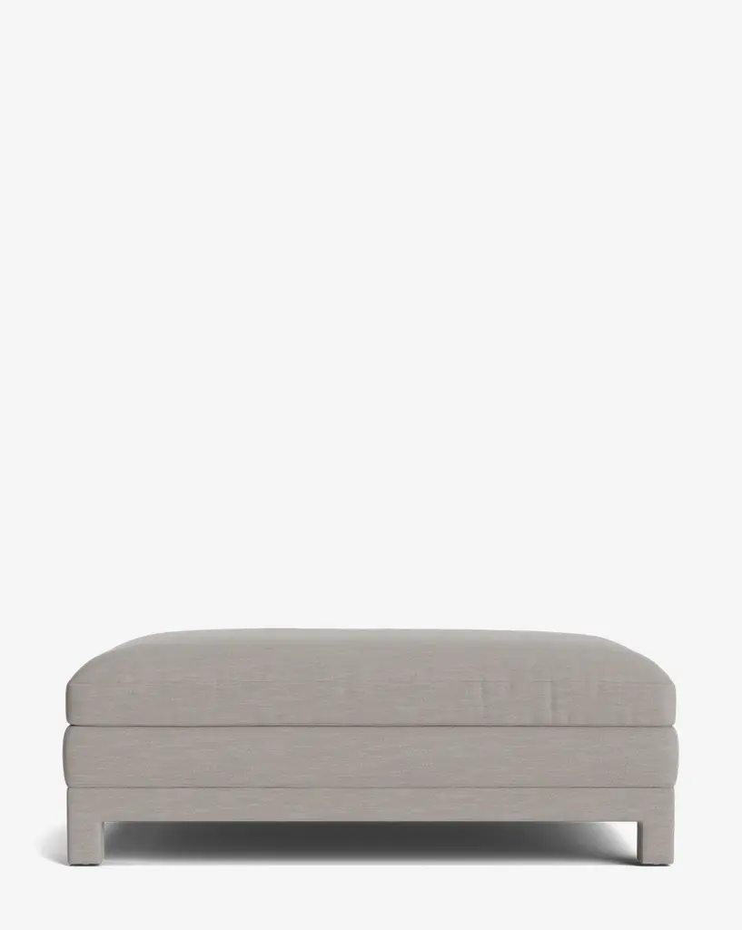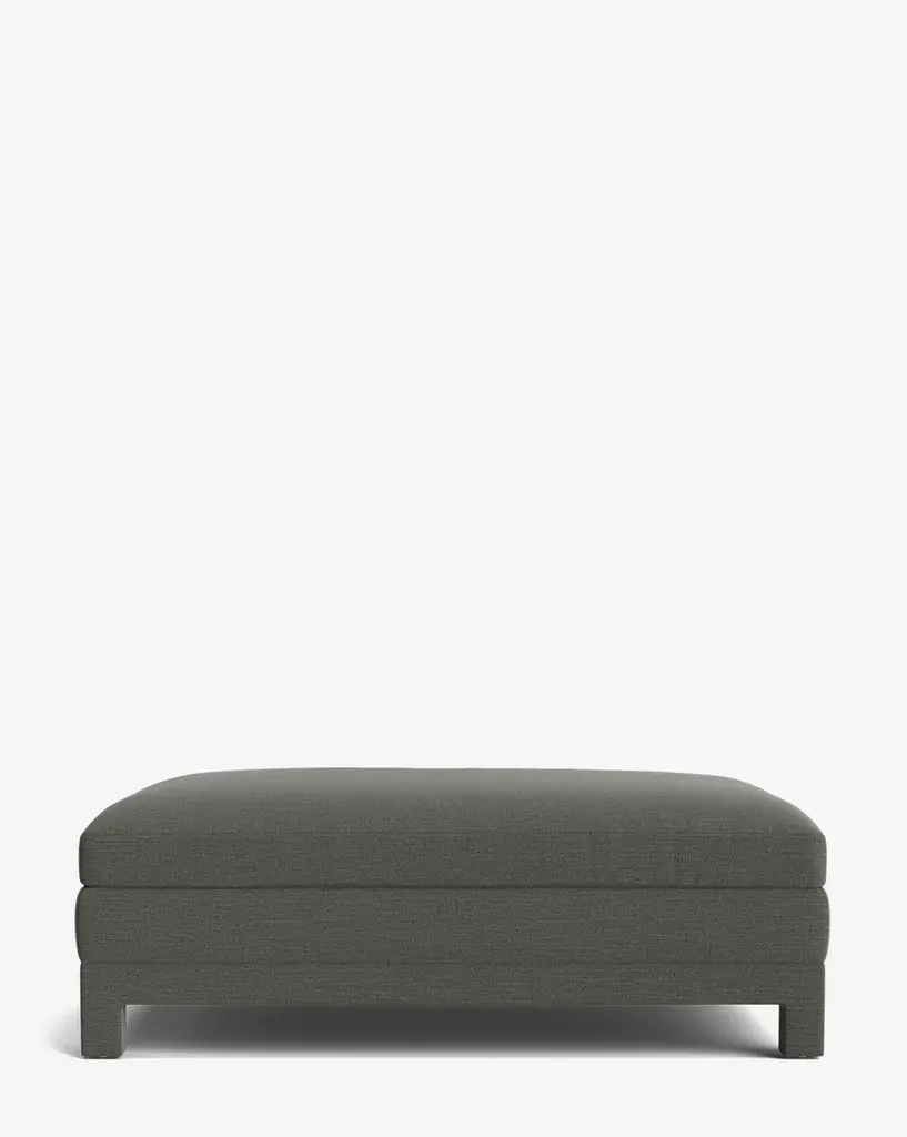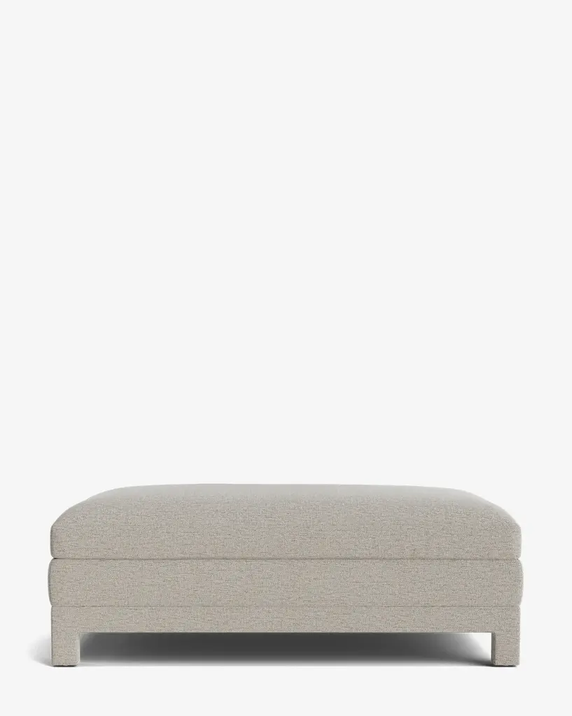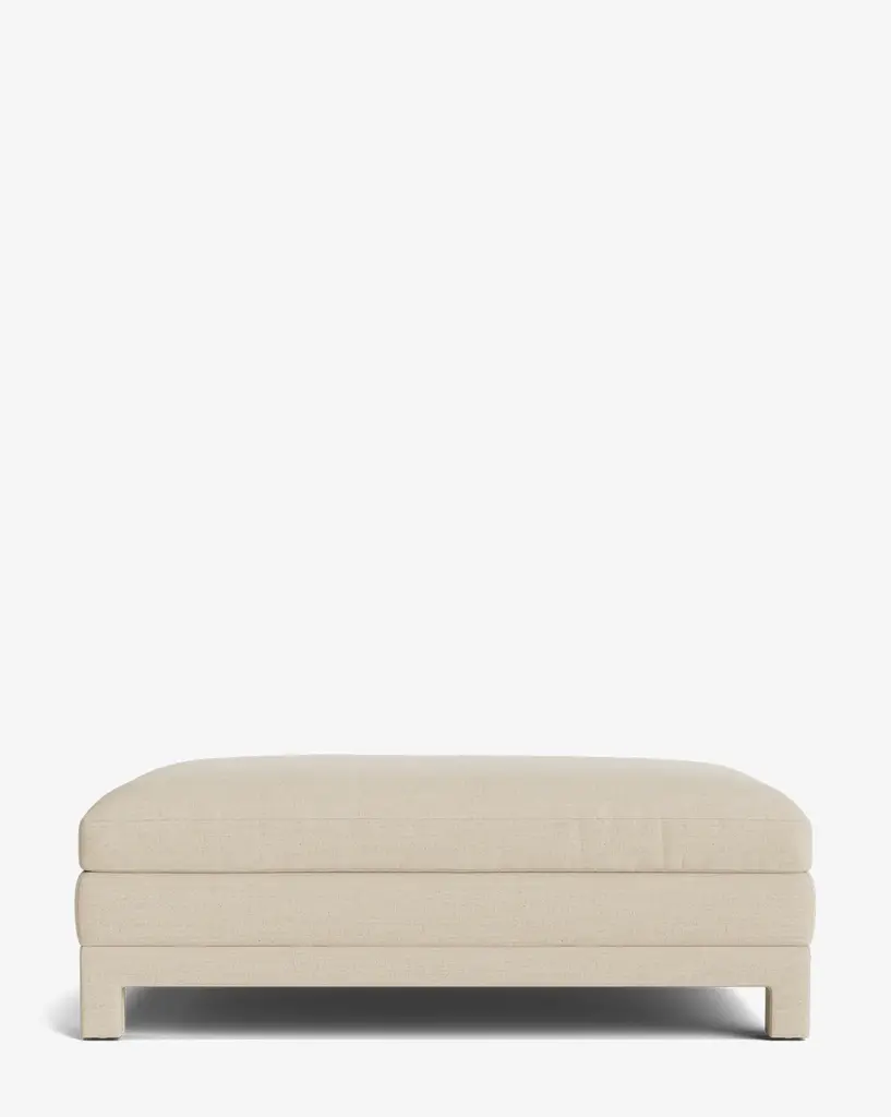 Made to order with a timeless silhouette and upholstered legs, the modern frame of the Appoline Ottoman holds a wide cushion that is firm, yet comfortable. As part of the made to order Upholstery Collection, the ottoman is available in a selection of high-quality fabrics that highlight its simple and elegant frame.