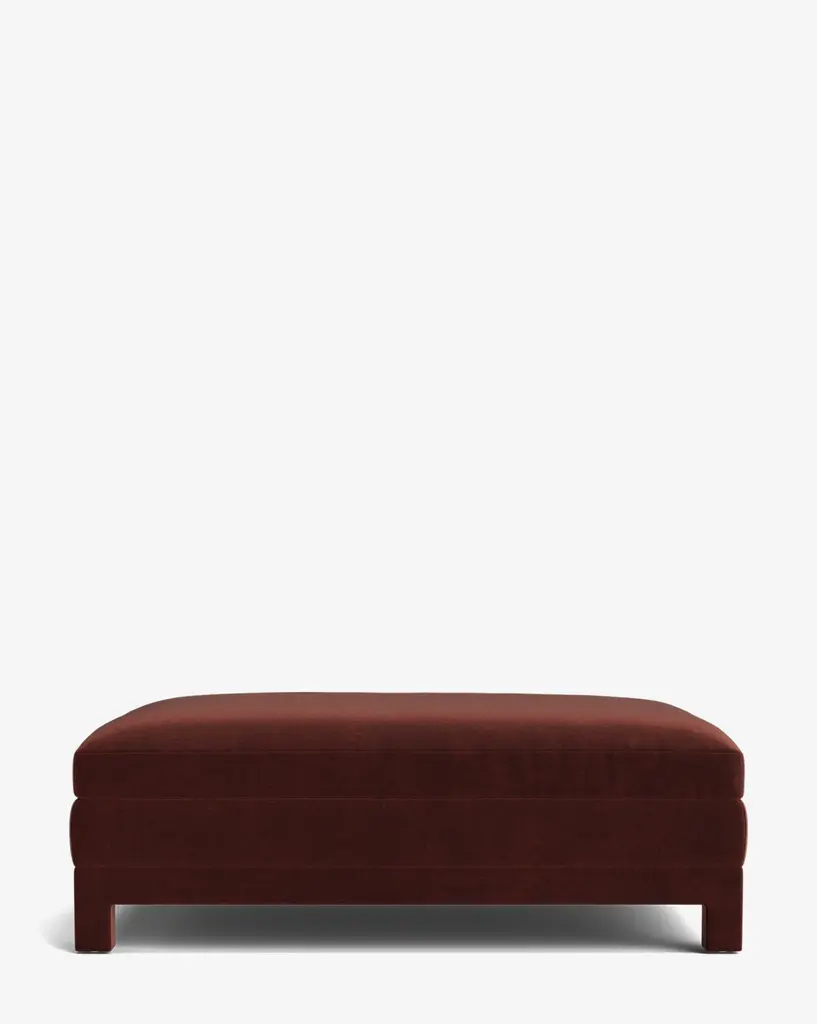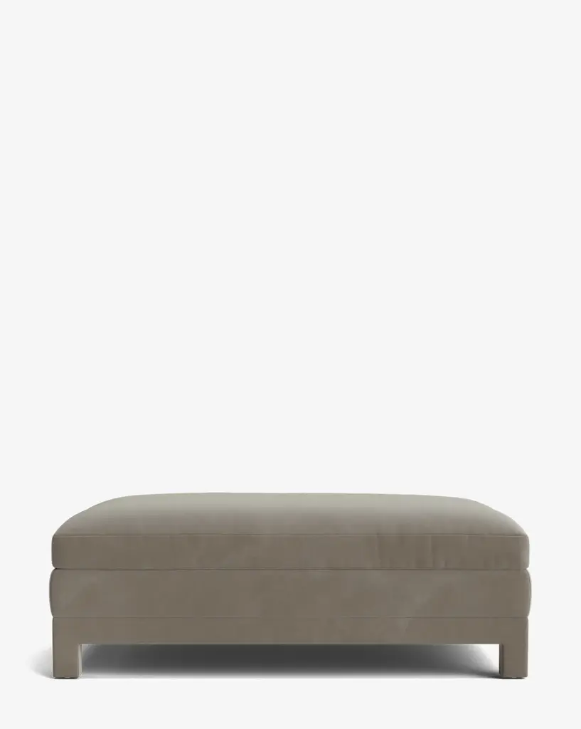 Made to order with a timeless silhouette and upholstered legs, the modern frame of the Appoline Ottoman holds a wide cushion that is firm, yet comfortable. As part of the made to order Upholstery Collection, the ottoman is available in a selection of high-quality fabrics that highlight its simple and elegant frame.