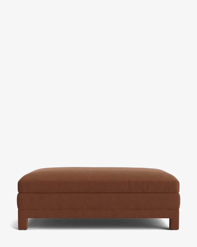 Made to order with a timeless silhouette and upholstered legs, the modern frame of the Appoline Ottoman holds a wide cushion that is firm, yet comfortable. As part of the made to order Upholstery Collection, the ottoman is available in a selection of high-quality fabrics that highlight its simple and elegant frame.