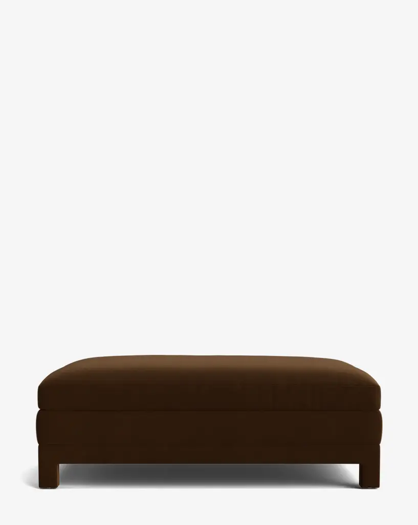Made to order with a timeless silhouette and upholstered legs, the modern frame of the Appoline Ottoman holds a wide cushion that is firm, yet comfortable. As part of the made to order Upholstery Collection, the ottoman is available in a selection of high-quality fabrics that highlight its simple and elegant frame.