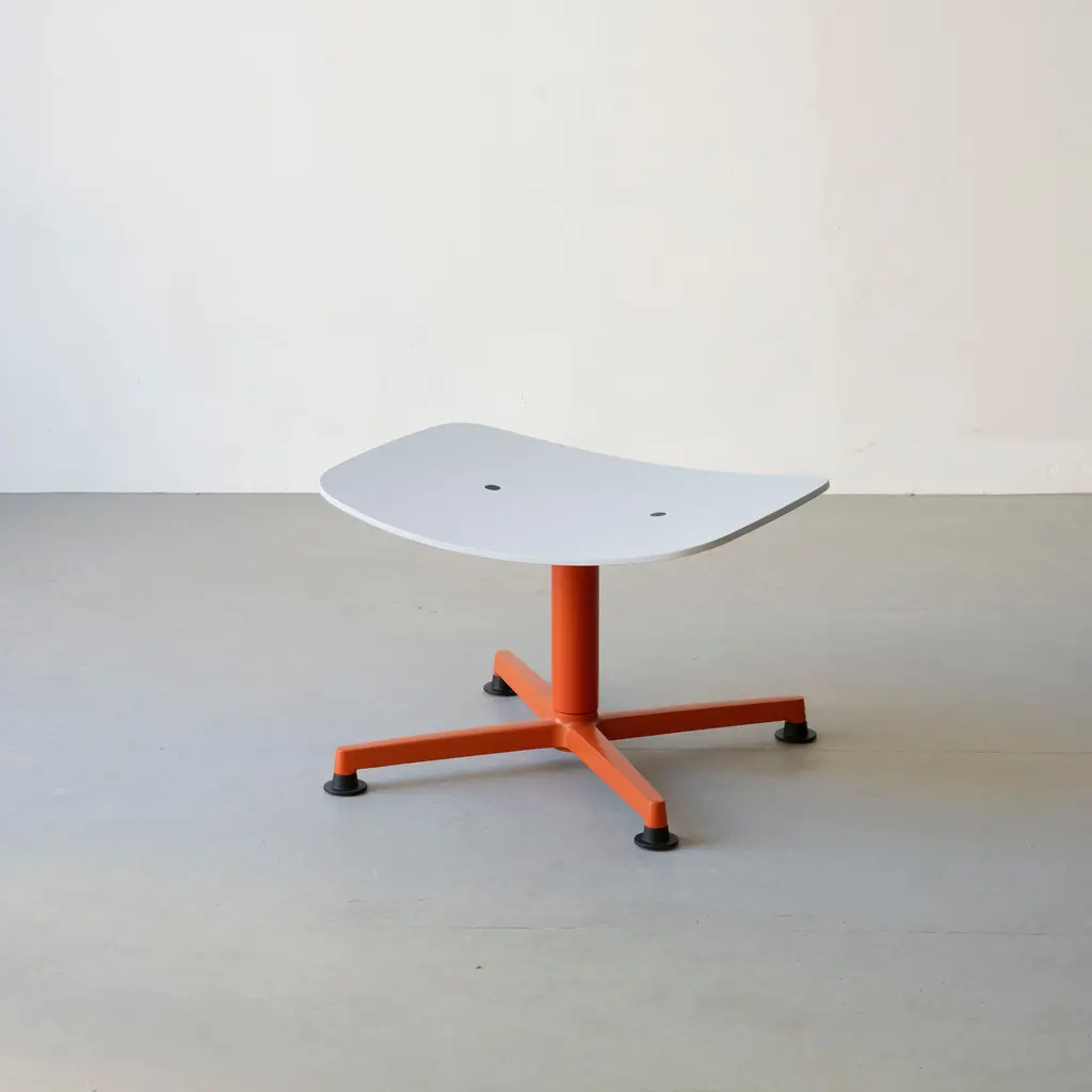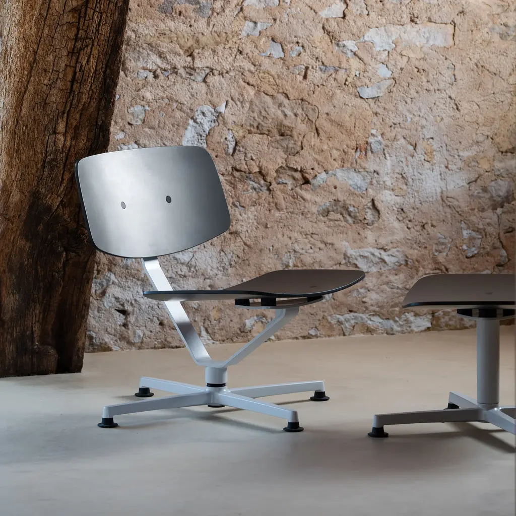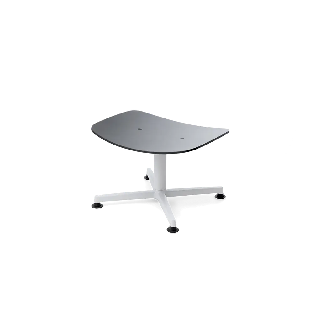 The ARBA Ottoman is a simple yet refined composition of two molded plywood elements, a cross-like structure of bent metal profiles and a die cast aluminum base. In its clarity, the composition communicates directly with the user. The ottoman has nothing to hide and yet it surprises us once we sit in it. Seat is perfectly shaped and positioned, the central spine adds the dynamic movement typical of flat sheet metal, to which the base adds a pleasant swivel function. The ottoman keeps the formal purity of an experimental prototype while it is a well-thought and precisely made industrial product that comes in a flat box and can be mounted with a few simple actions. Features