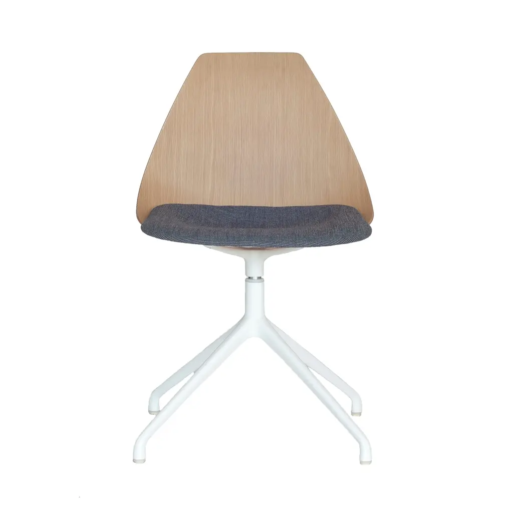 The ARBA Ottoman is a simple yet refined composition of two molded plywood elements, a cross-like structure of bent metal profiles and a die cast aluminum base. In its clarity, the composition communicates directly with the user. The ottoman has nothing to hide and yet it surprises us once we sit in it. Seat is perfectly shaped and positioned, the central spine adds the dynamic movement typical of flat sheet metal, to which the base adds a pleasant swivel function. The ottoman keeps the formal purity of an experimental prototype while it is a well-thought and precisely made industrial product that comes in a flat box and can be mounted with a few simple actions. Features