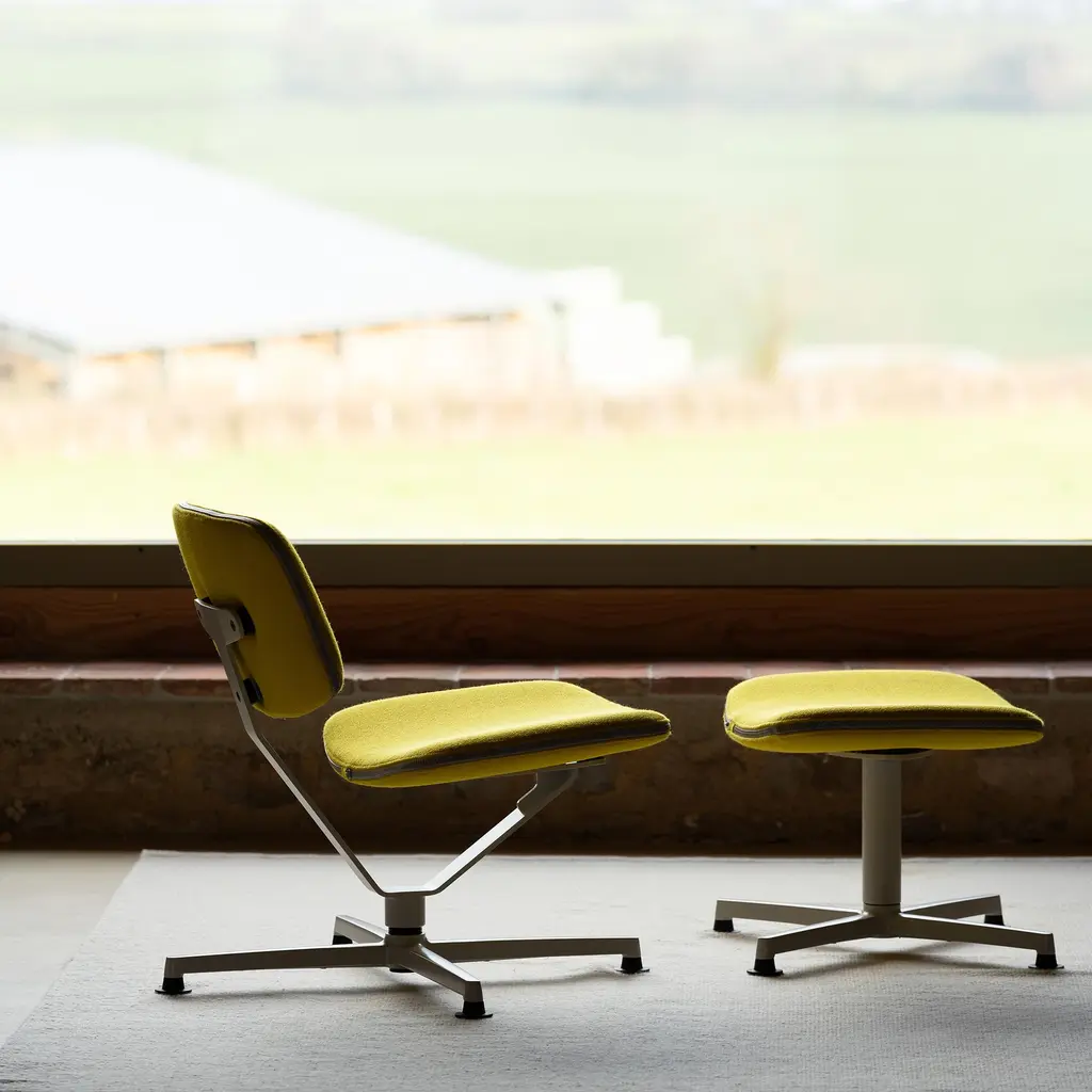 The Arba Ottoman is exactly what it looks like: a molded-plywood seat on a cross of bent metal, anchored by a die-cast aluminum base. Sit down and you’ll feel the front edge catch the backs of your legs just right. There’s a little give from the plywood, a clean swivel in the base, and a silhouette that stays light instead of bulky. It’s easy to live with, too. The ottoman arrives flat-packed and goes together in a few minutes—no mystery parts, no fuss. Park it with the matching lounge chair or pull it over as an extra perch when friends show up. Simple shape, honest materials, and the kind of comfort you don’t have to think about.