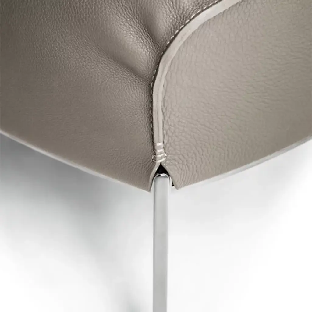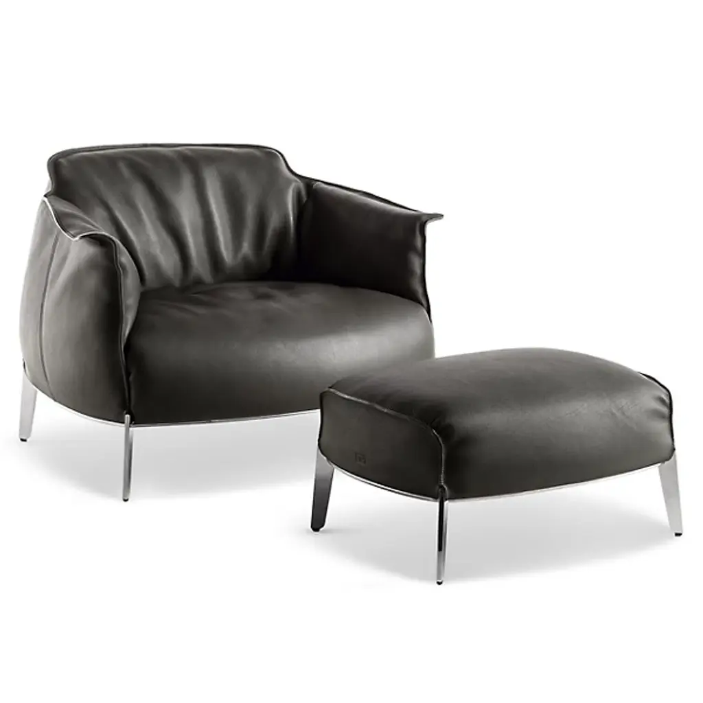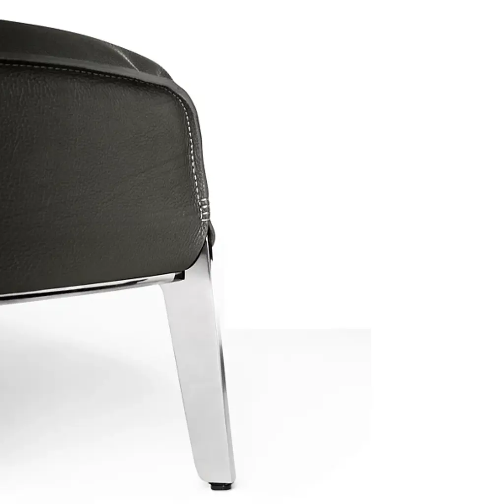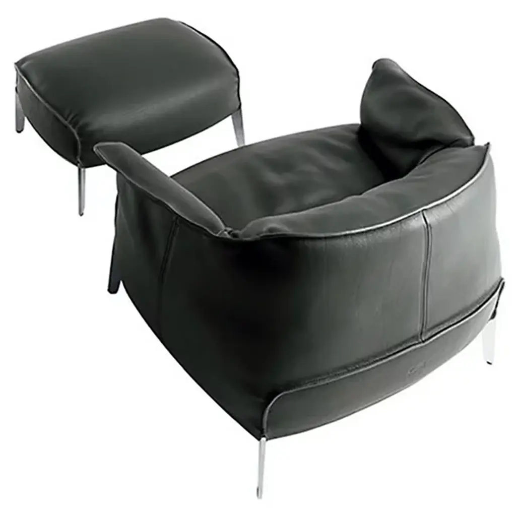The Archibald Gran Comfort Ottoman from Poltrona Frau is refined relaxation at its best. This ottoman is designed by Jean-Marie Massaud, whose background in industrial furniture informs the classy look of this decorative piece. A frame of fine metal is supported by linear legs, which allow you to put your feet up and relax with confidence. Taking on a form that is neither round nor square, this ottoman is distinctive and comfortable. Your ottoman is composed of exquisite leather for a restful experience during your leisure time.