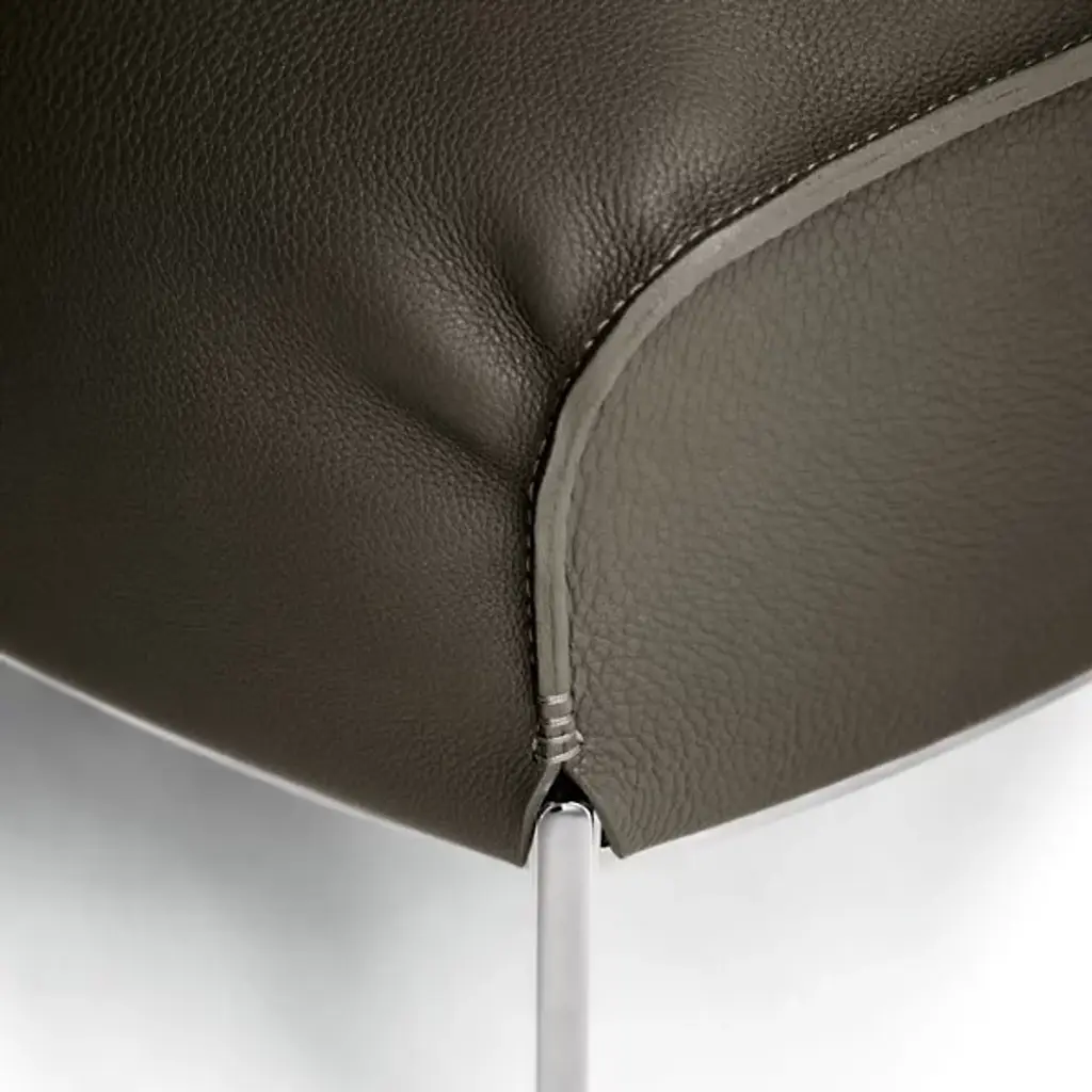 The Archibald Gran Comfort Ottoman from Poltrona Frau is refined relaxation at its best. This ottoman is designed by Jean-Marie Massaud, whose background in industrial furniture informs the classy look of this decorative piece. A frame of fine metal is supported by linear legs, which allow you to put your feet up and relax with confidence. Taking on a form that is neither round nor square, this ottoman is distinctive and comfortable. Your ottoman is composed of exquisite leather for a restful experience during your leisure time.