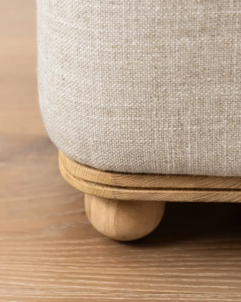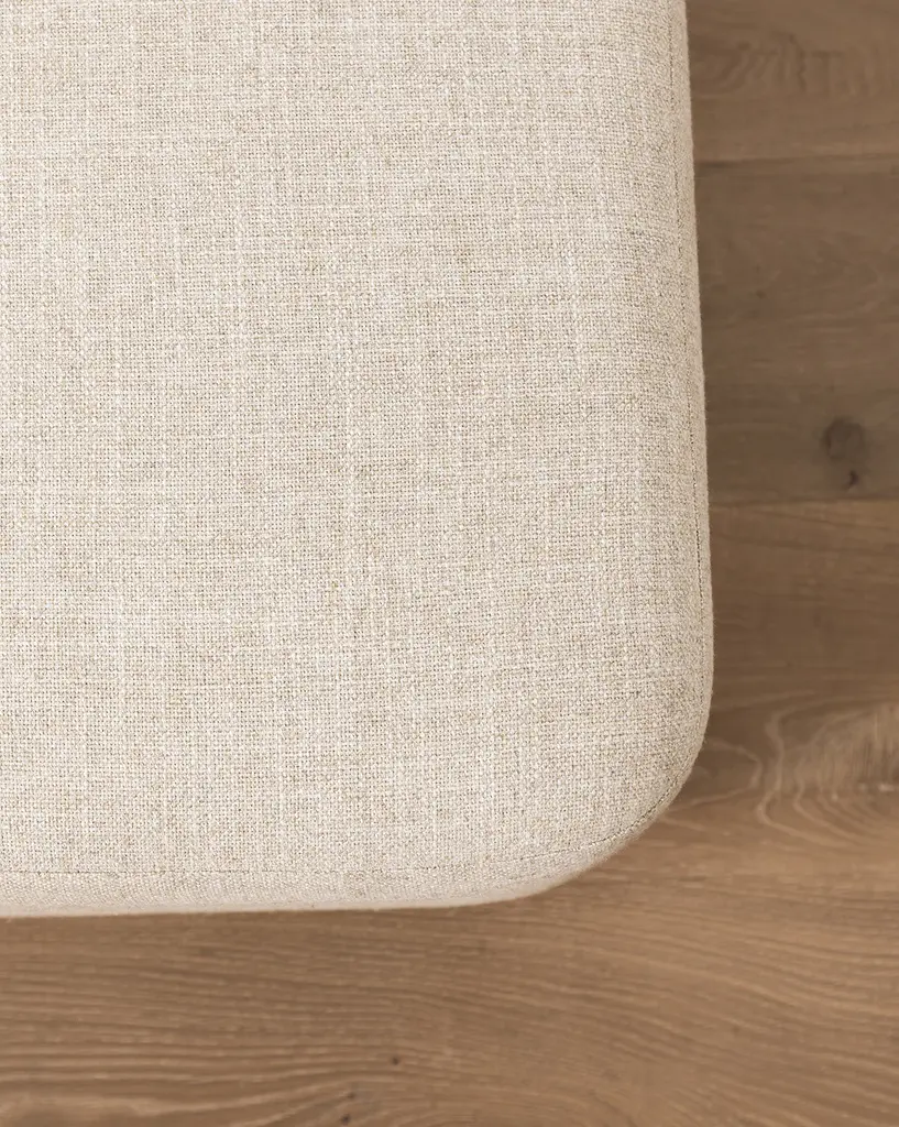 The Arie Ottoman is shapely and neutral for easy styling with your modern decor. Made with a polyester and linen fabric on an oak frame, the upholstered ottoman adds just the right amount of elevated comfort anywhere it is placed.