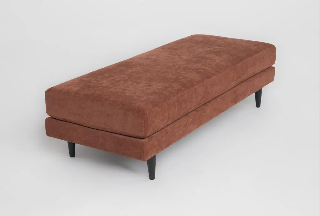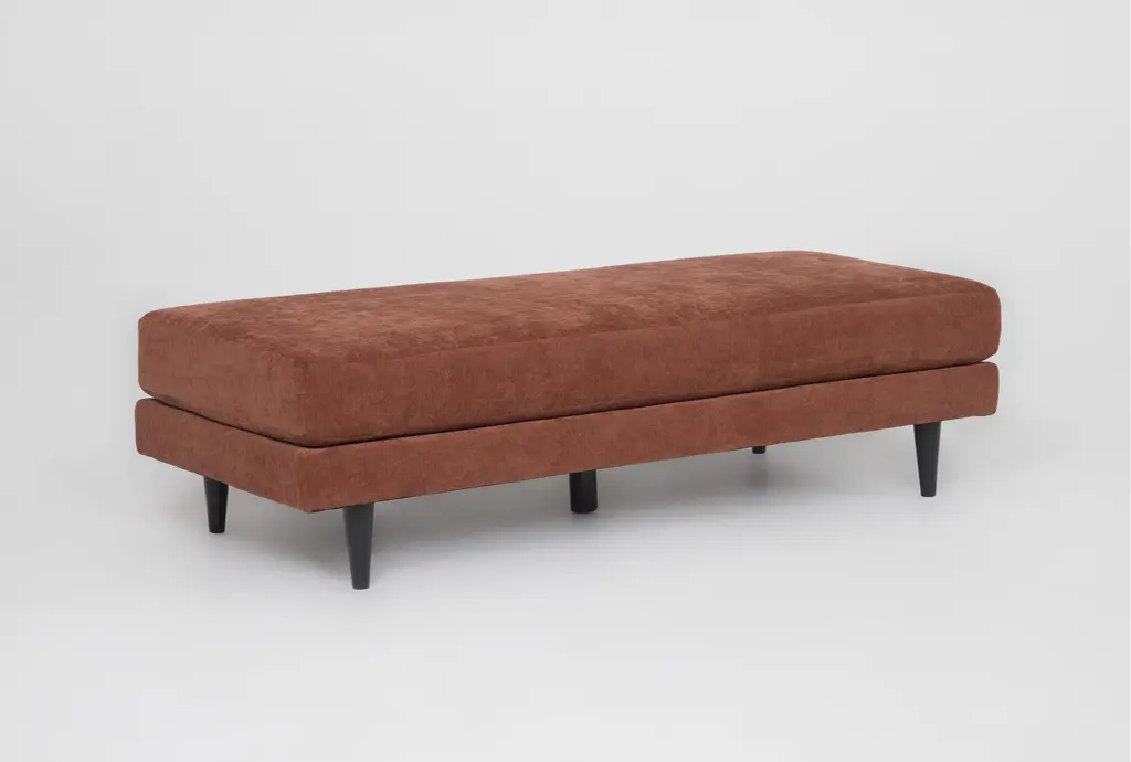 Get the style you want and the comfort you deserve from our Aries cocktail ottoman, which draws you in with its mid-century inspiration and keeps you coming back for more with its quality construction. Tapered legs distinguish the retro-centric frame, while soft polyester fabric is durable and easy to clean. Made for and by Living Spaces, the design comes in multiple colors. You'll love the grounded color palette, which favors earth tones.