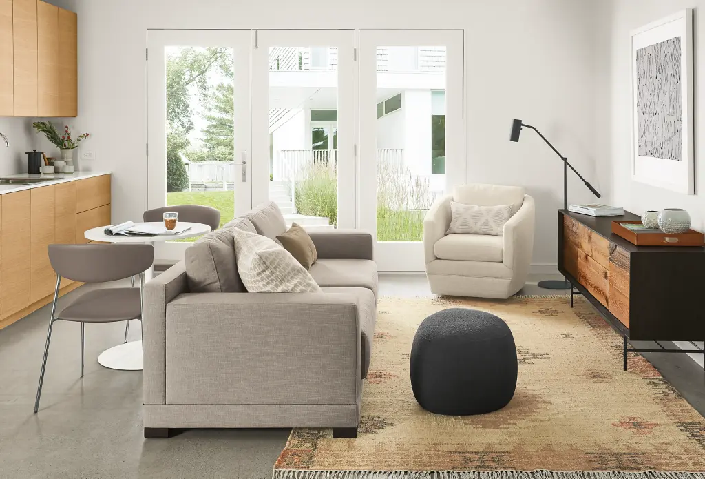 Our Asher ottoman is a versatile modern accent piece reminiscent of river stones. Perfect as a coffee table, extra seating or a footrest, Asher is solidly constructed yet easy to move thanks to small, smooth legs. Asher is beautiful individually or arranged in groups.