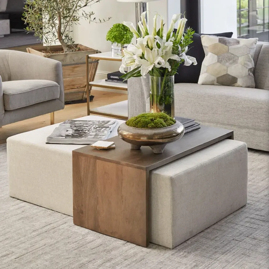 This cleverly designed ottoman/table gives you the best of both worlds—soft seating and a sturdy surface for drinks, cheese plates and more. The Asher Ottoman is perfect for families and entertaining.