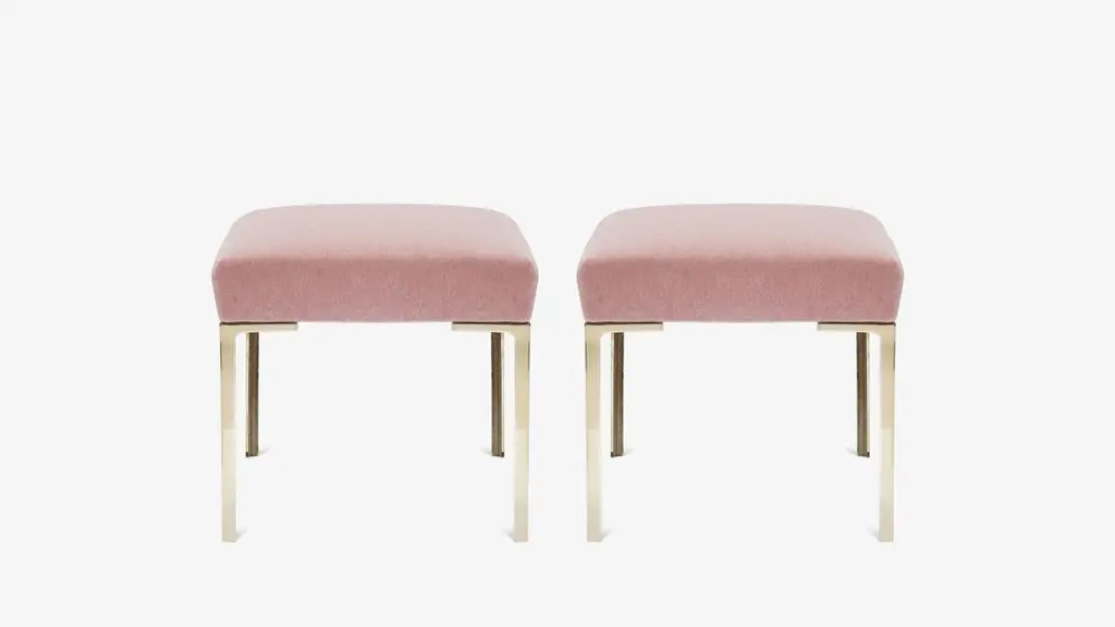 Astor Petite Brass Ottomans In Blush Mohair By Montage, Pair