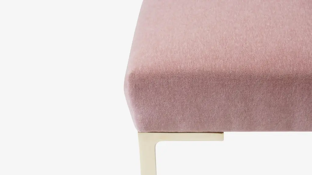 Designed by Montage, the Astor Petite ottoman is a wonderful addition to a refined interior space. Astor was designed with the delicate proportions of the mid-century, celebrating an era of design that remains ever so popular today. The Astor collection is designed and manufactured in-house by Montage. Shown with a premium Angora Mohair in Blush, soft like a dream, with countless other colors to choose from. The brass legs are cast and polished in the USA, a contemporary interpretation of vintage Italian design. Available with a Waterfall (shown), Welted, or Tufted top with fully customizable overall dimensions.These are made to order to ensure the best quality. Montage has a large fabric library and would be happy to mail swatches of other colors and fabric qualities. The cast brass legs are also available in a nickel plated variation. We are able to fulfill orders of quantity and custom sizes. Please contact Montage with any questions, and to request a cutting of the shown color to ensure satisfaction.
