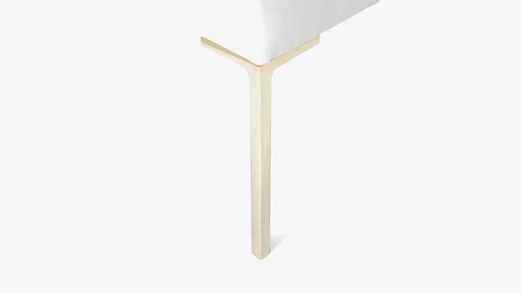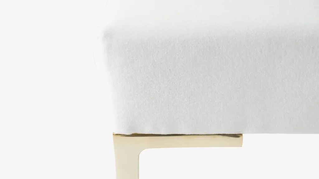 Designed by Montage, the Astor Petite ottoman is a wonderful addition to a refined interior space. Astor was designed with the delicate proportions of the midcentury, celebrating an era of design that remains ever so popular today. The Astor collection is designed and manufactured in-house by Montage. Shown with a Velvet in Snow, so soft to the touch, with countless other colors to choose from. The brass legs are cast and polished in the USA, a contemporary interpretation of vintage Italian design. Available with a waterfall (shown), welted, or tufted top with fully customizable overall dimensions.These are made to order to ensure the best quality. Montage has a large fabric library and would be happy to mail swatches of other colors and fabric qualities. The cast brass legs are also available in a nickel plated variation. We are able to fulfill orders of quantity and custom sizes.