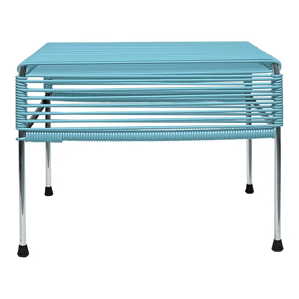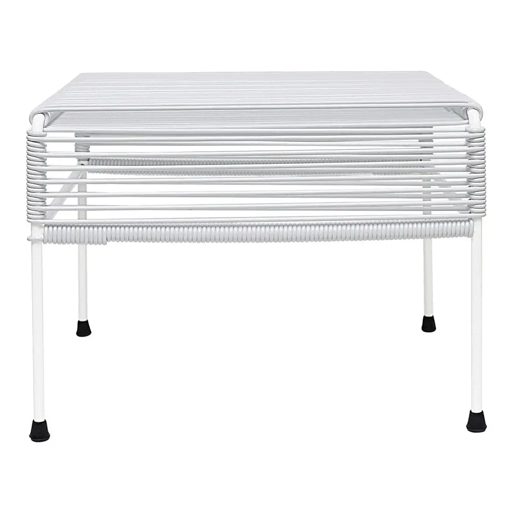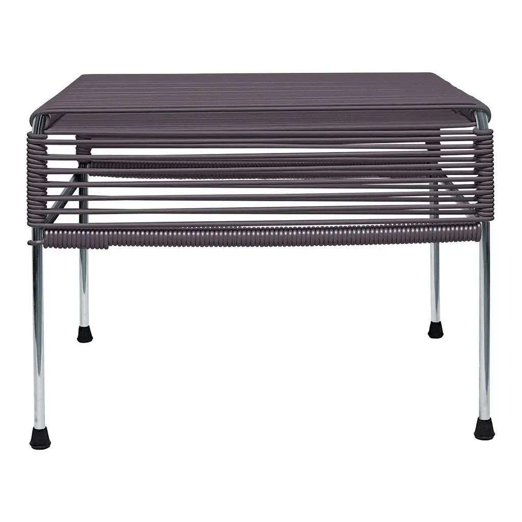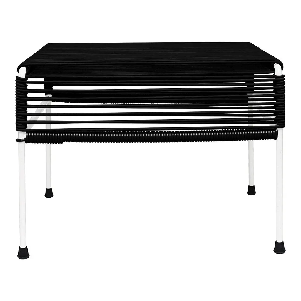 The Adam Ottoman - contemporary rectangular ottoman or side table suitable for indoors and out. Composed of a metal base woven with vinyl cord. Coordinates well with our many vinyl cord chairs. The galvanized steel is rust resistant and the very durable yet flexible, UV protected vinyl will stay colorfast for years. This table is weatherproof, easy to clean, and available in everybodys favorite color. The Adam Ottoman is a great, modern design for commercial and residential applications. Pretty good innit (Add a tempered glass top for a more solid table surface - glass not included).