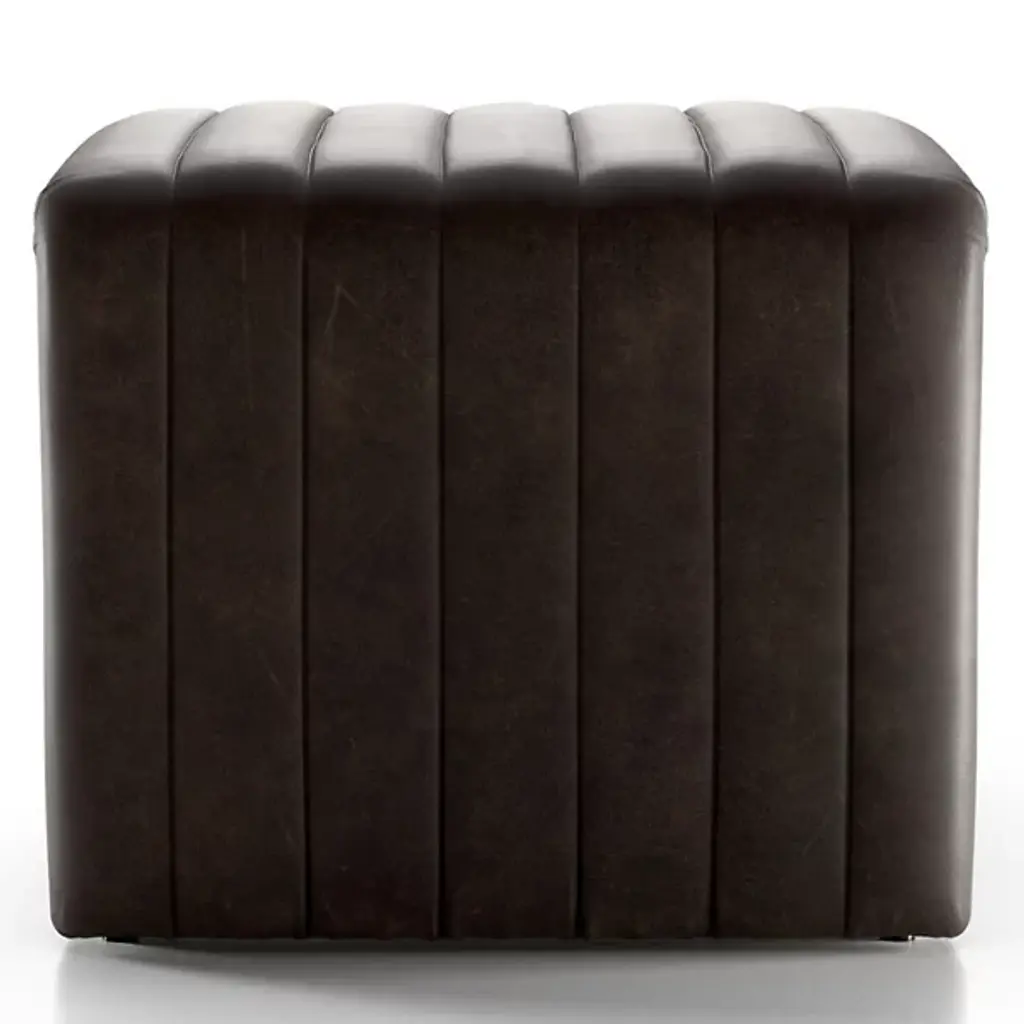 Transform your living space with the Augustine Ottoman from Four Hands, a perfect blend of comfort and mid-century modern style. Upholstered in luxurious top-grain leather, it invites relaxation with high-resiliency, high-density foam cushioning that supports your legs beautifully. The solid oak and poplar plywood frame adds strength and stability, while clean lines and timeless design make it a versatile accent piece. Use it to kick up your feet or as extra seating.