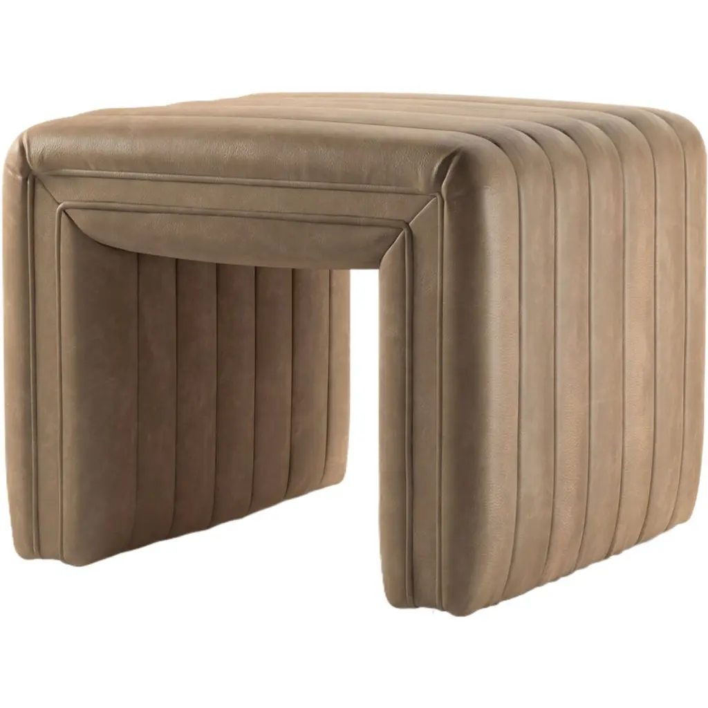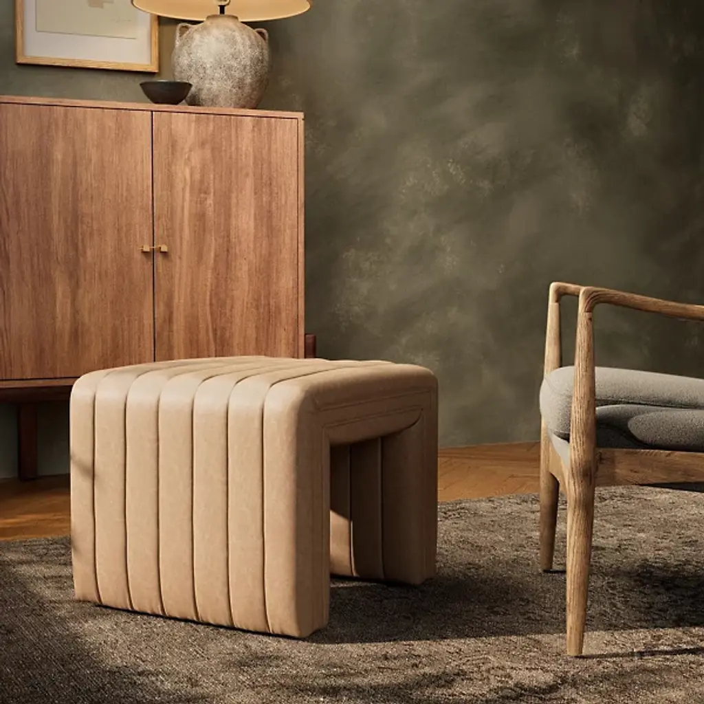 Transform your living space with the Augustine Ottoman from Four Hands, a perfect blend of comfort and mid-century modern style. Upholstered in luxurious top-grain leather, it invites relaxation with high-resiliency, high-density foam cushioning that supports your legs beautifully. The solid oak and poplar plywood frame adds strength and stability, while clean lines and timeless design make it a versatile accent piece. Use it to kick up your feet or as extra seating.