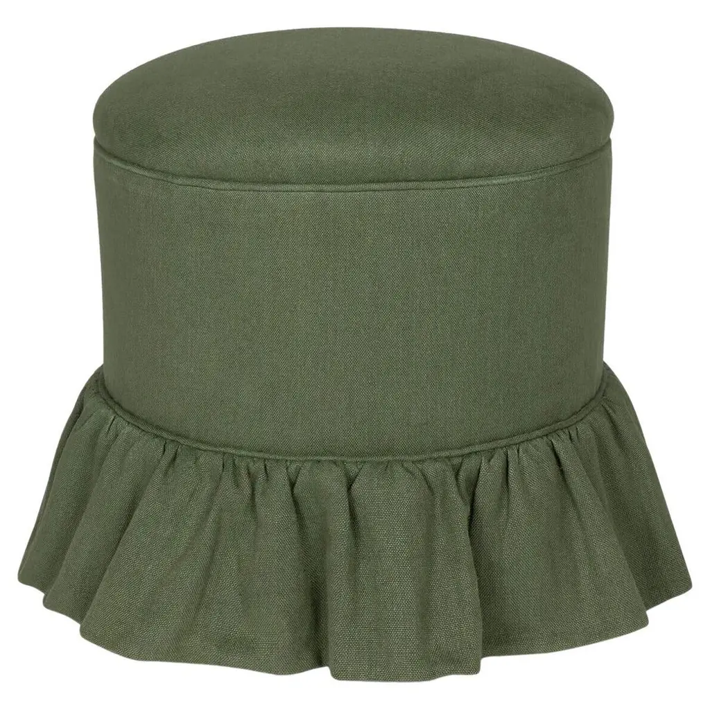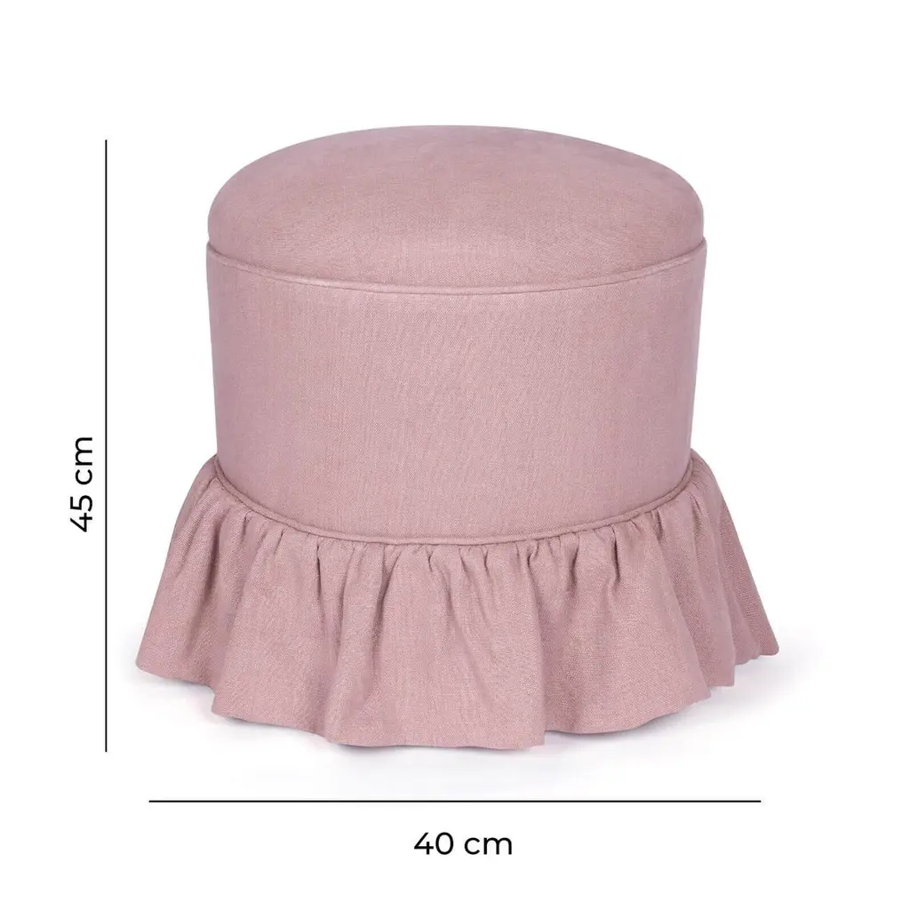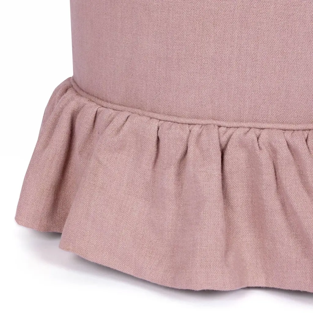 Reminiscent of early modernist furniture and embracing the curved edges and rounded silhouettes found in Nature, this bottoman (an ottoman to sit your bottom on), is swathed in blush pink, 100% hemp for a natural aesthetic and finished with a soft, ruffled skirt and round wooden feet.