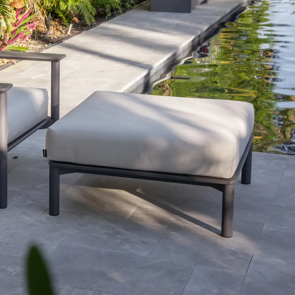 The Aurora Outdoor Ottoman from Loll Designs offers a comfortable and stylish seating or foot rest option for your outdoor space. Its durable recycled plastic frame with a rust-proof powder coat ensures long-lasting use, while the tall seat height allows for easy sitting and standing. Pair with the Aurora Sofa for a cohesive and inviting outdoor lounge area. Highlights