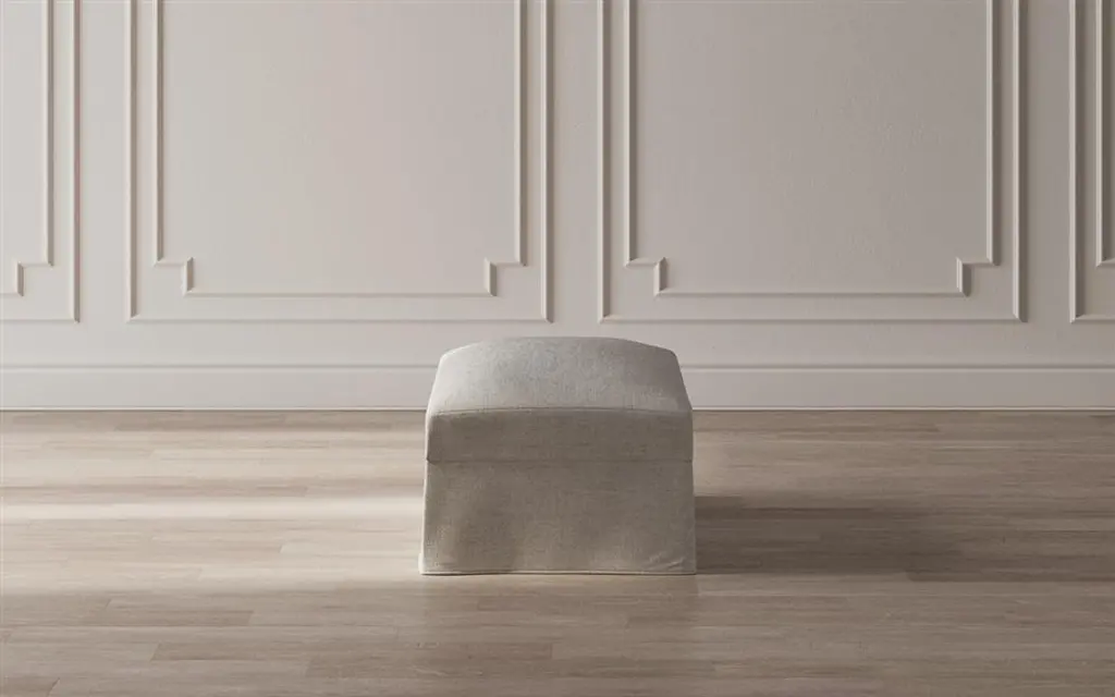 The Avery slipcovered ottoman embodies casual simplicity with clean lines and a relaxed design. Soft yet supportive with a slightly firm sit, the low-maintenance seat cushion features a foam core surrounded by plush fiber fill. This comfortable, versatile piece pairs perfectly with the Avery slipcovered chair. Choose from washable slipcover fabrics in a variety of serene hues.