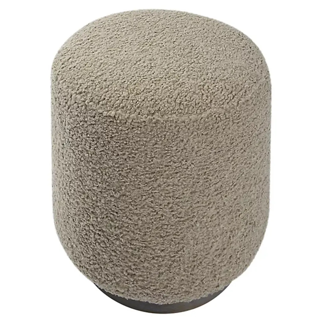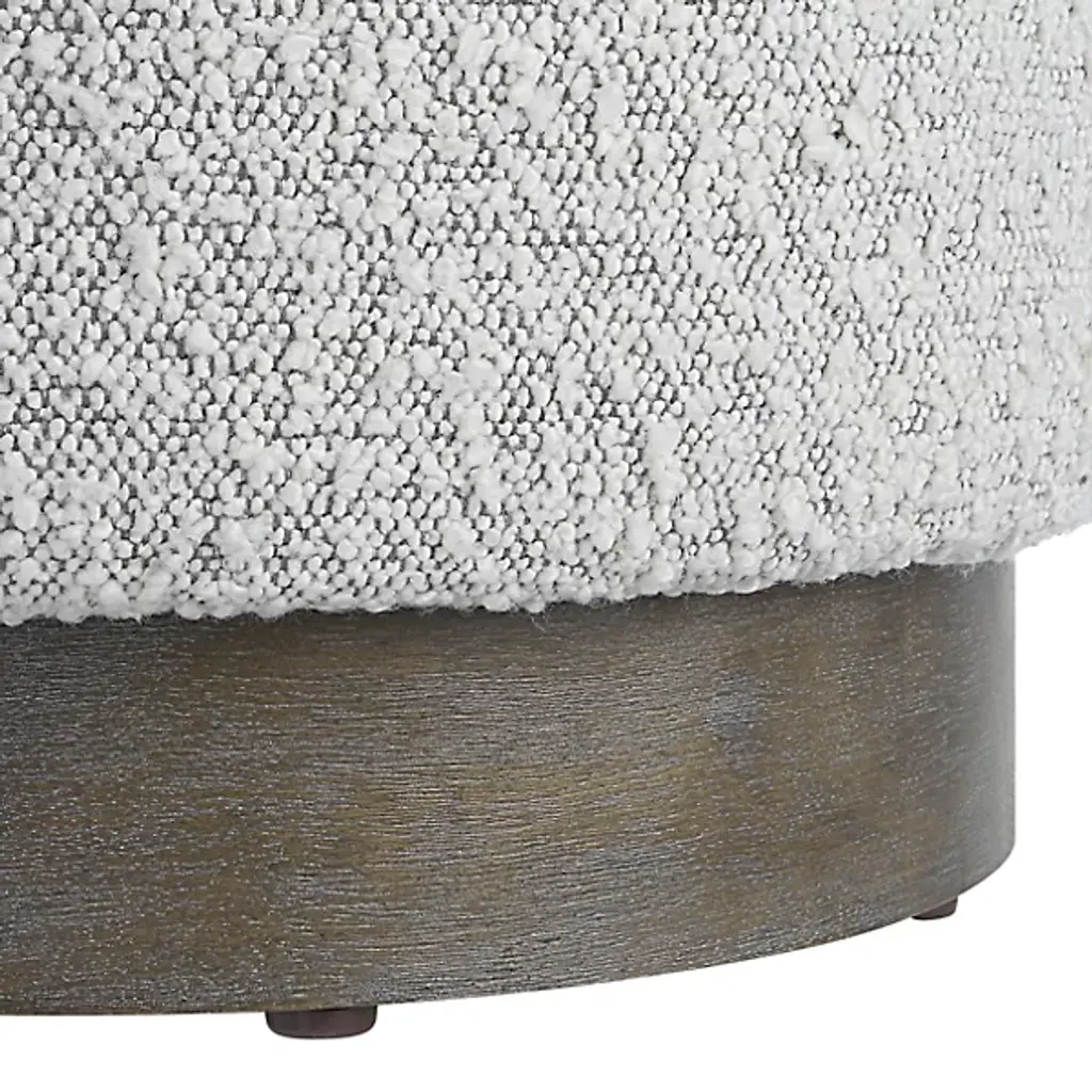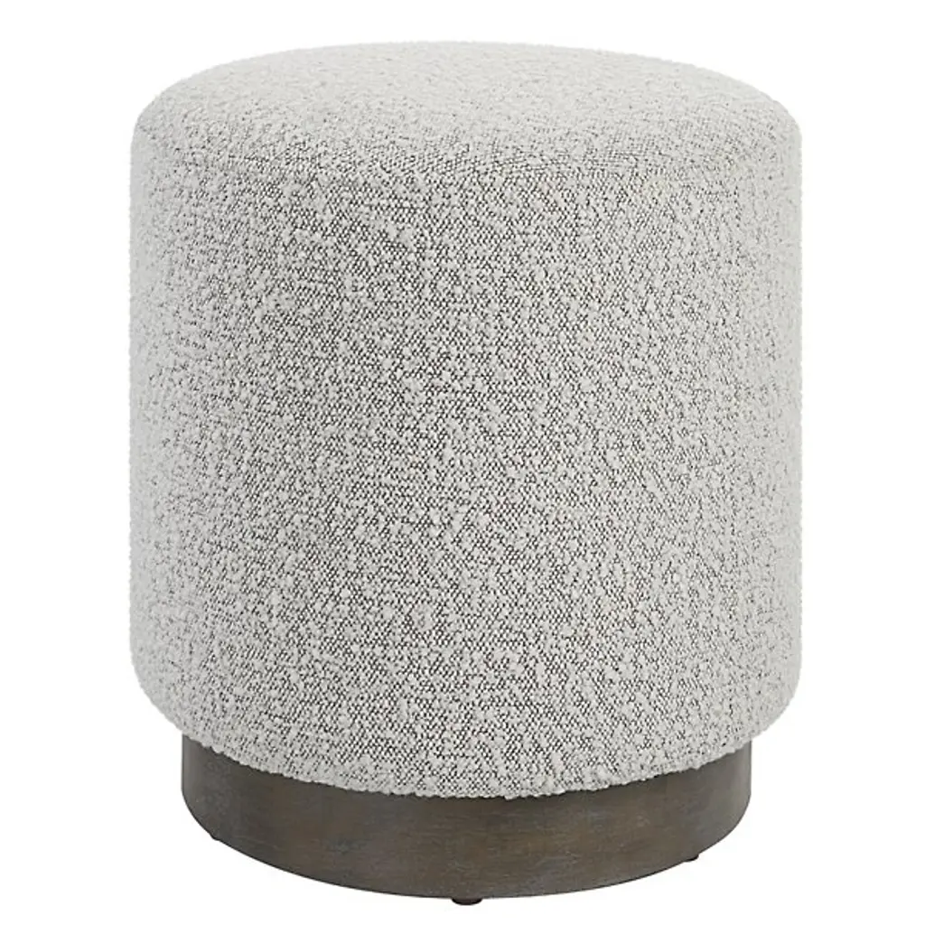 Provide a sophisticated puff of comfort for your interiors with the Avila Ottoman from Uttermost. Rising from a rounded oak wood base with a plywood frame, it sets soft foam into the plywood, encompassing it in a tastefully textured boucle fabric. The vibrant surface contrasts well with the smooth wood beneath it, offering a memorable modern character. Well-suited as an accent that plays well with modern and contemporary interiors, it is at once soft and supportive, able to add an inspired accent that doesn’t overpower its surroundings.