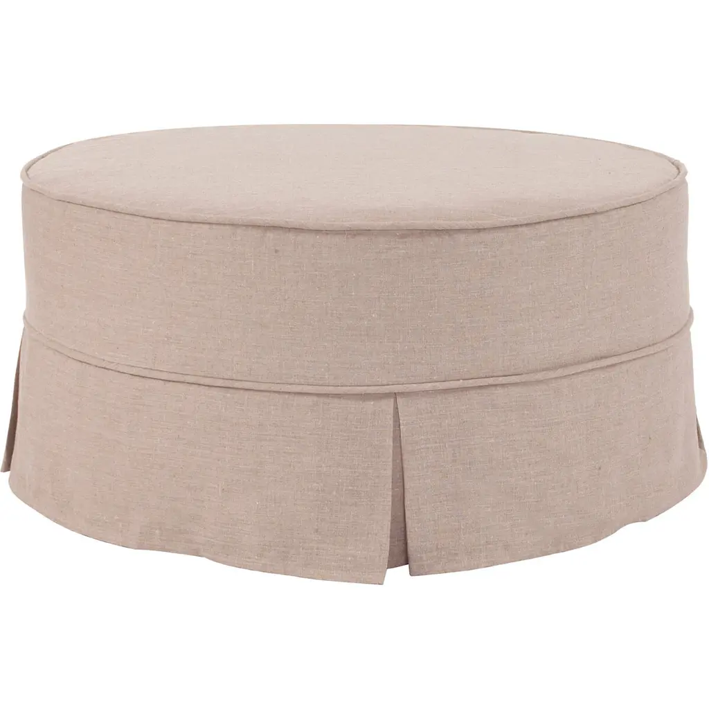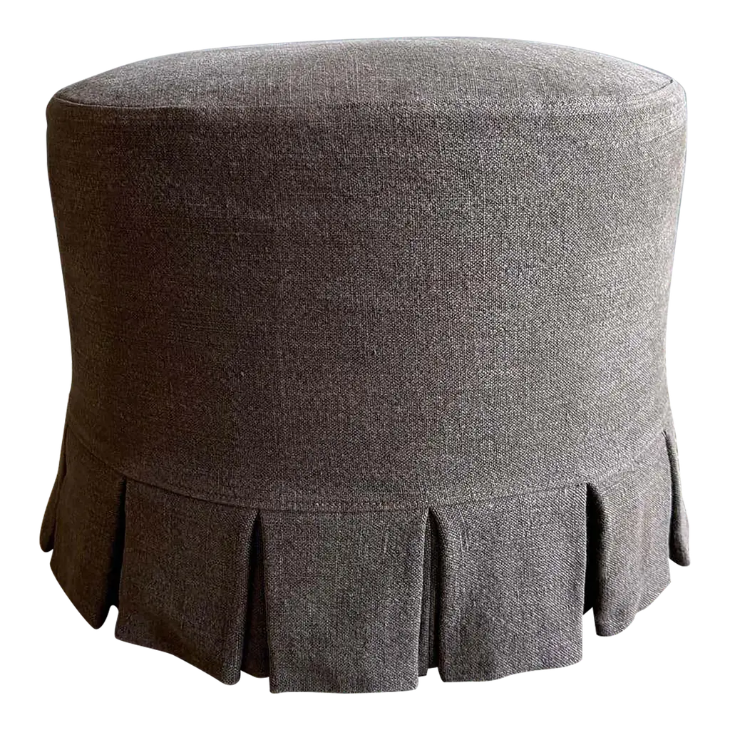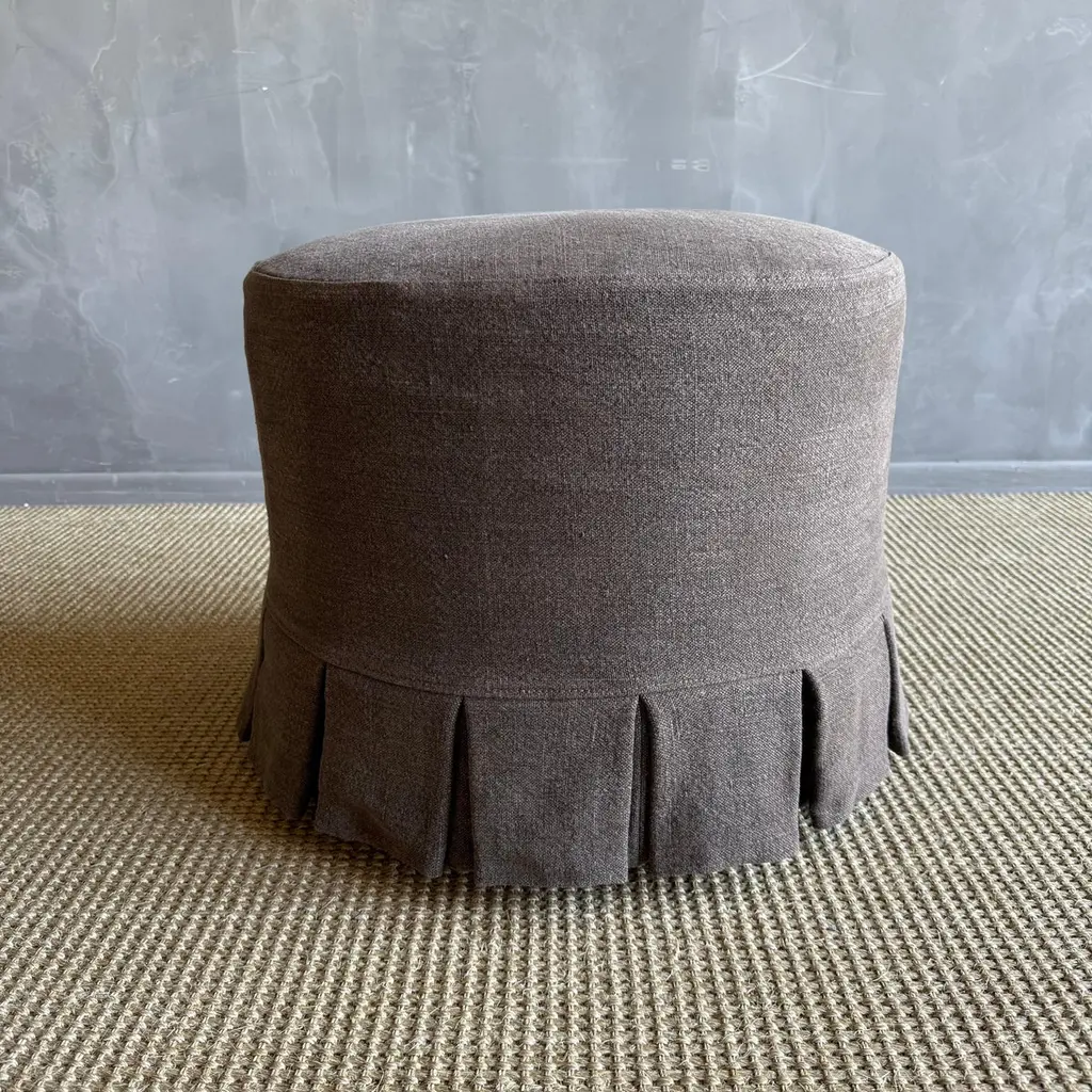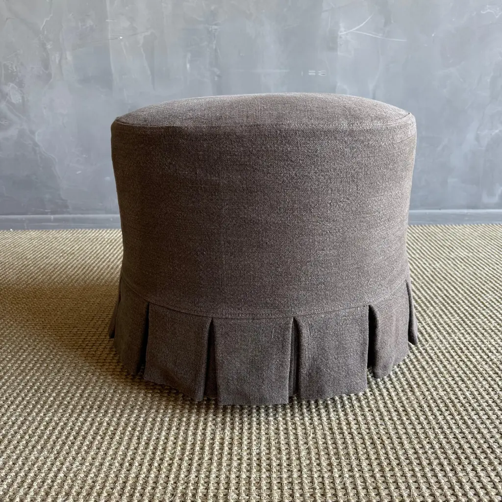Bailey Ottoman Slip Covered In Pleated Linen Cafe Noir