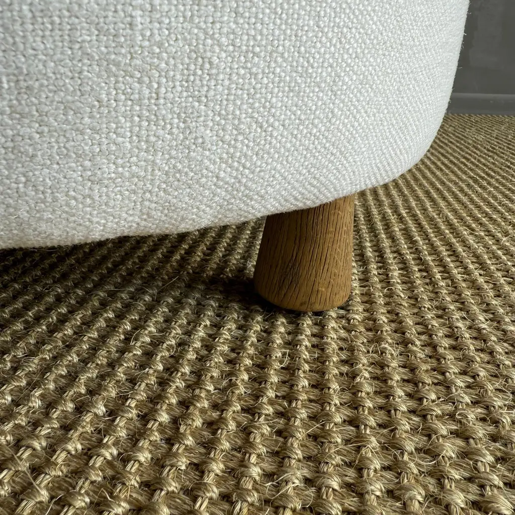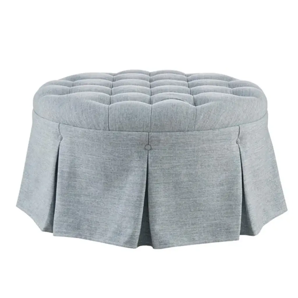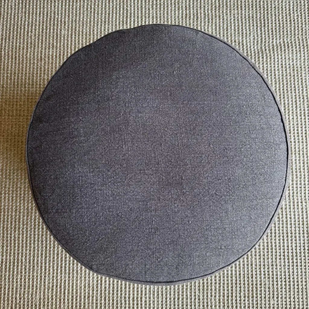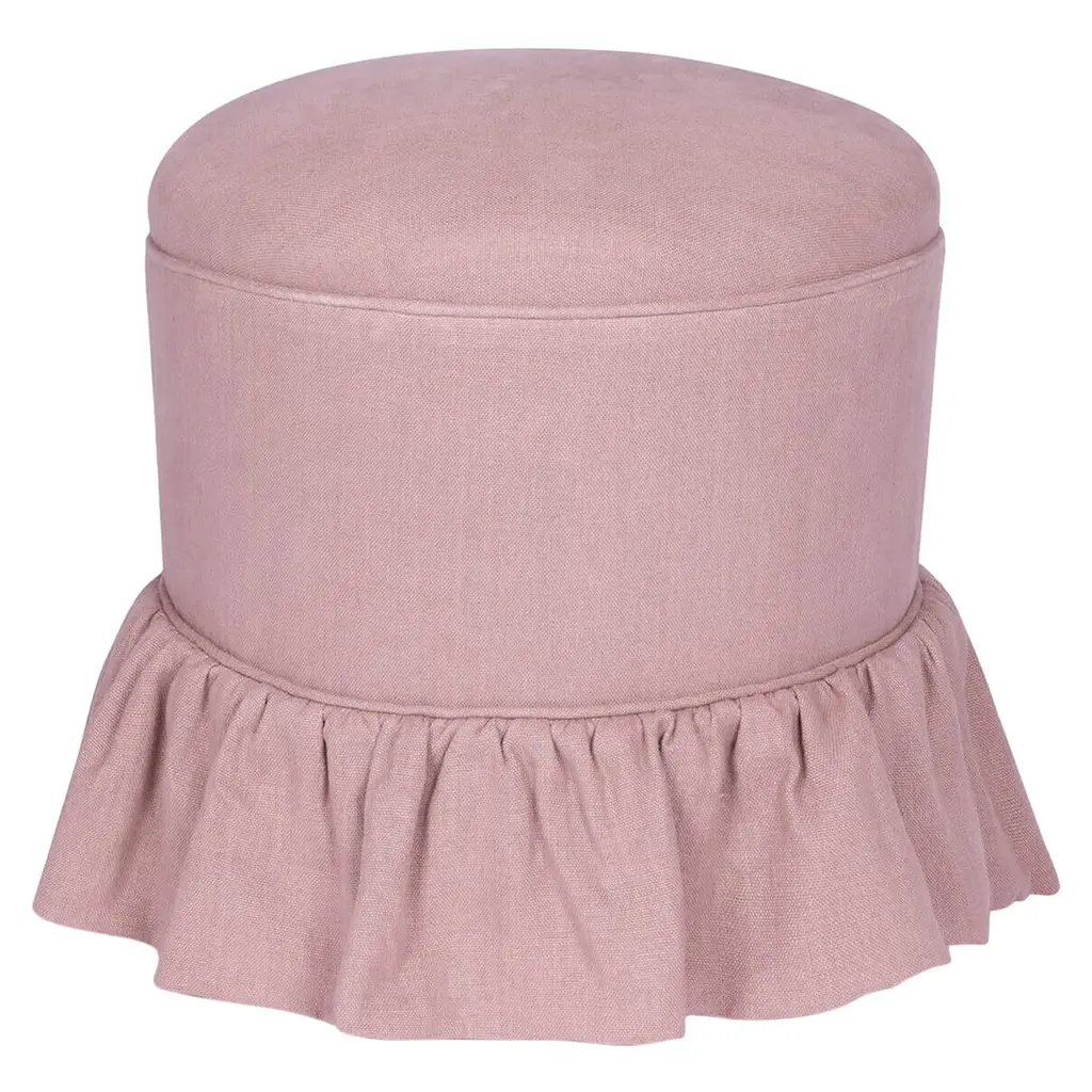 Introducing the Bailey Round Ottoman, with elegant white oak legs finished in a medium tone.Covered in a sophisticated heavy weight hemp this ottoman is versatile and stylish, featuring a slip cover with pleated ruffle details.The sturdy solid wood frame guarantees durability, while the medium-firm density foam offers both comfort and support. Whether you need additional seating or a footrest, this ottoman is perfect for any living room, bedroom, or entryway. Add a touch of functionality and chic style to your space with the Bailey slip covered round ottoman.Fabric: 100% linen / 100% hemp / Heavy Stone Washed FinishColor: Cafe Noir / Brown Stone Wash Legs: White Oak / Med. FinishDetail: Hand Stitched X Pattern along seam.Size: 20″ D x 17.5″ H