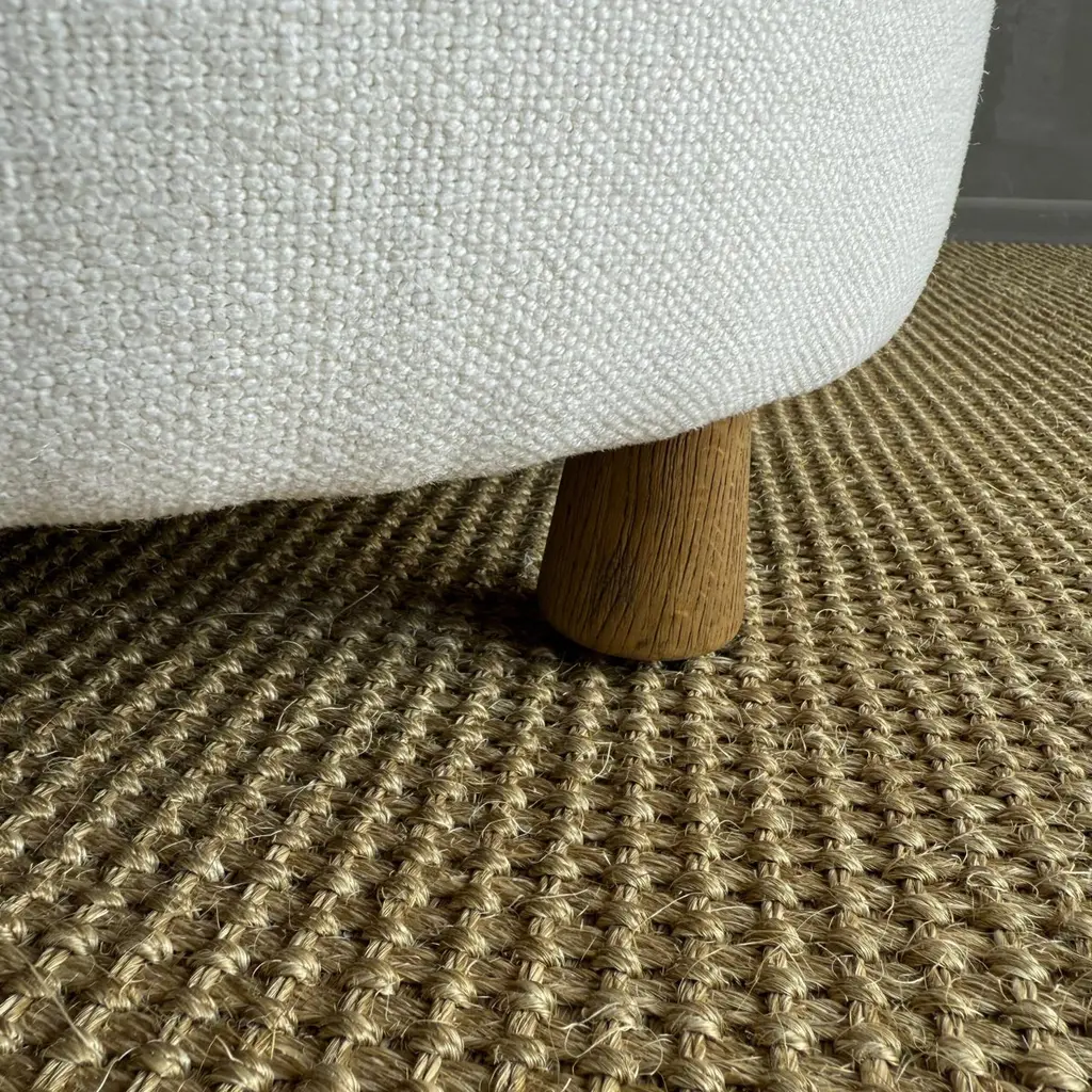 Bailey Oyster Hemp Ottoman With Oak Legs