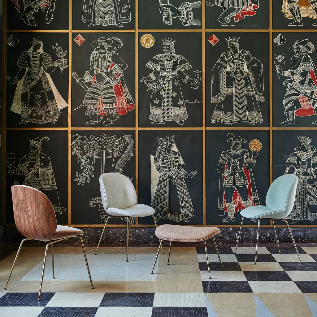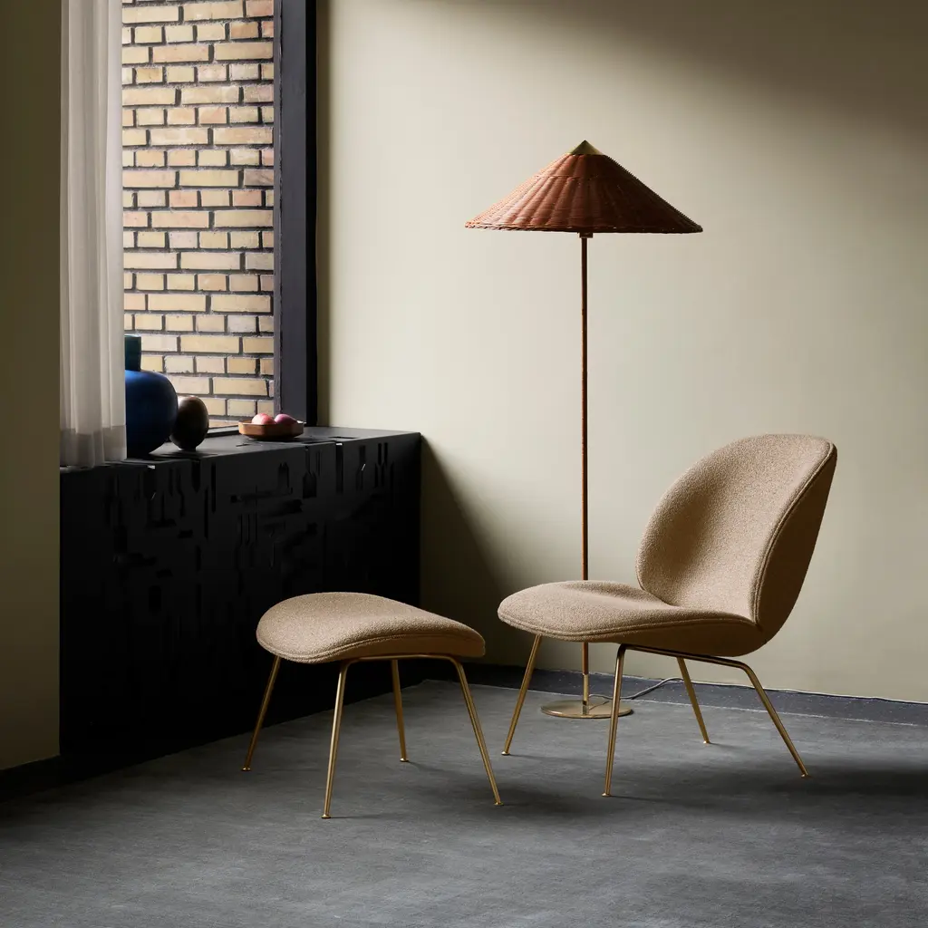 Beetle Ottoman brings an extra level of repose when paired with Gubi's lounge chair of the same name. But it also stands on its own as ad-hoc extra seating. Designer studio GamFratesi references the insect world with the shape and shell-like architecture of the ottoman on its attenuated metal legs. Swathed in luxurious upholstery choices of fine textiles or buttery leather.
