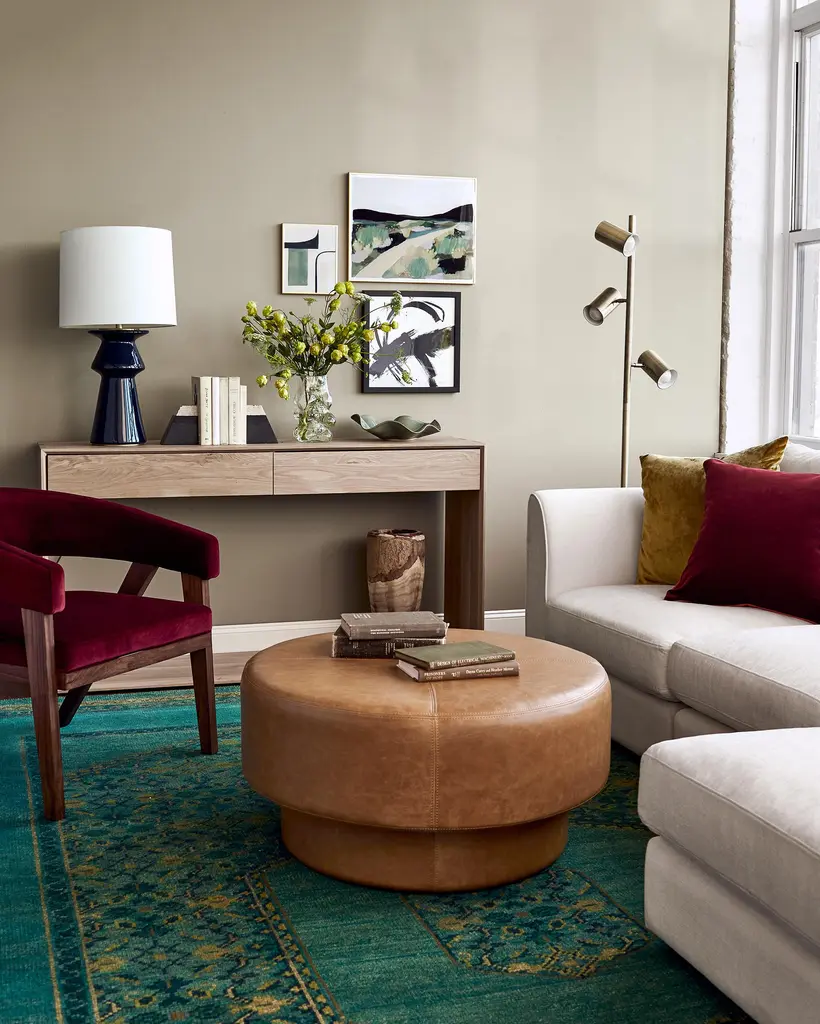 Low to the ground and substantially round, Benson is minimal in its details yet distinct in its design. 34" Diameter, 17" Height Designer tip: Benson's circular shape pairs especially well with sectionals. Pairs well with: Marlow, Lukas, Tatum