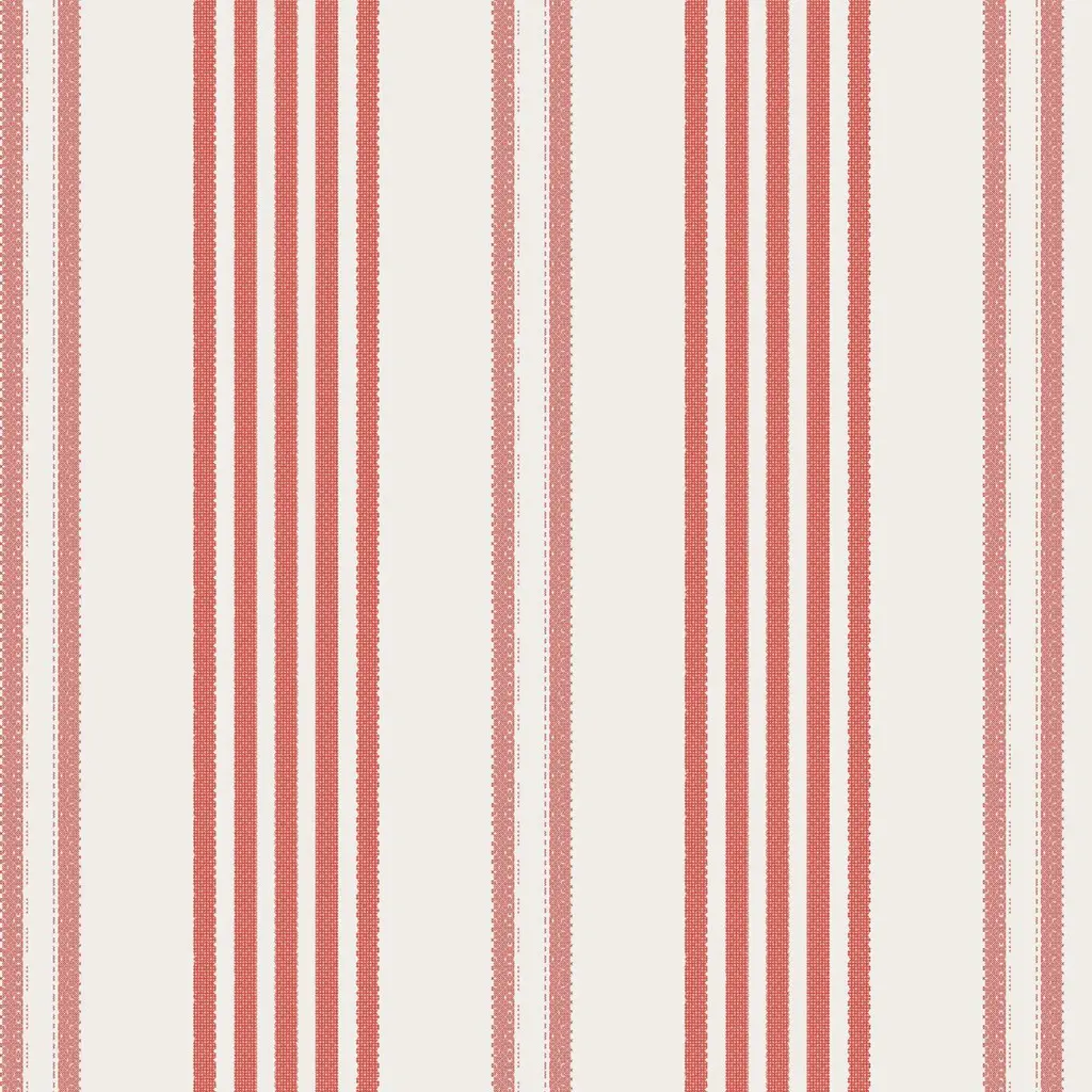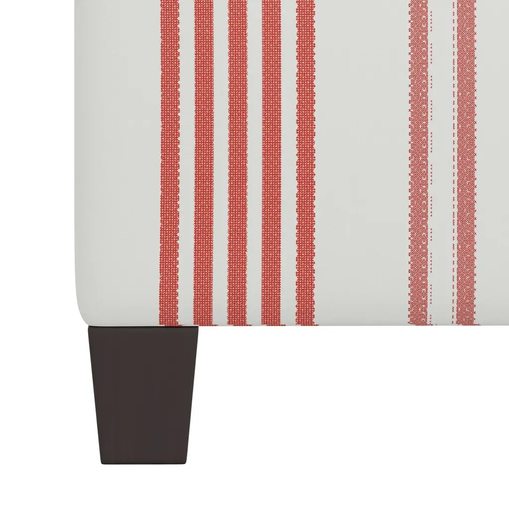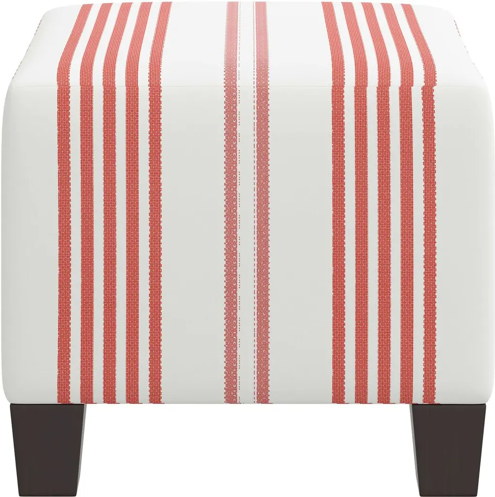 Exclusive to One Kings Lane: Upholstered in printed ticking stripes and made in the USA, this square ottoman can multitask as a footrest, an extra seat, or when topped with a tray, an occasional table.