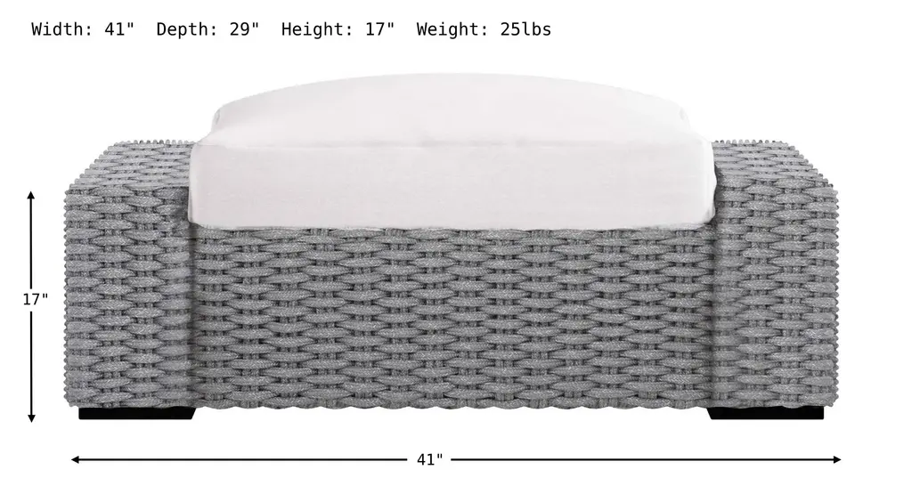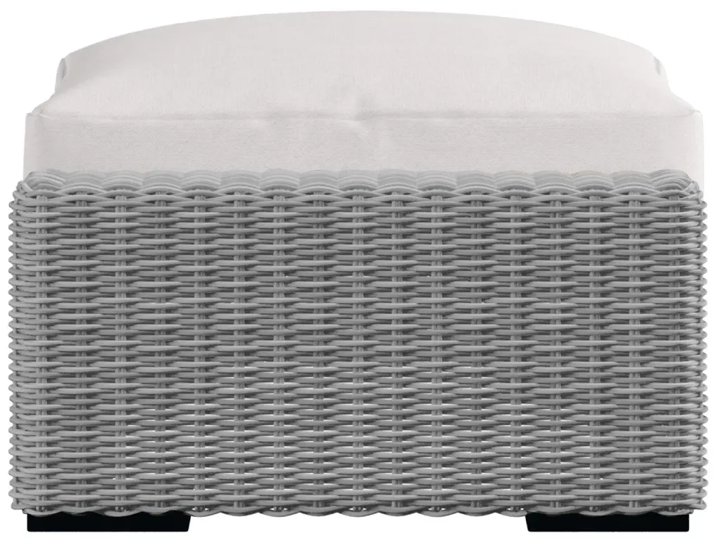 Upgrade your indoor/outdoor setup with the Bernhardt Capri Ottoman, which is all about class and style.Ę This sleek ottoman features a robust powder-coated aluminum frame that ensures durability. The mist gray woven fabric seriously exudes some contemporary vibe, and it perfectly complements the plush, quick-dry foam cushion that promises comfort rain or shine. Plush cushions provide excellent comfort while you place your feet, and they can also act as extra seating. The intricate rope detailing is something unique, adds a classic look, and makes it a standout piece. Raven leg finish adds a sleek touch to the overall design. Whether you are using it as a footrest or extra seating, this versatile ottoman is designed for both indoor and outdoor use, offering a chic and cozy addition to any space.