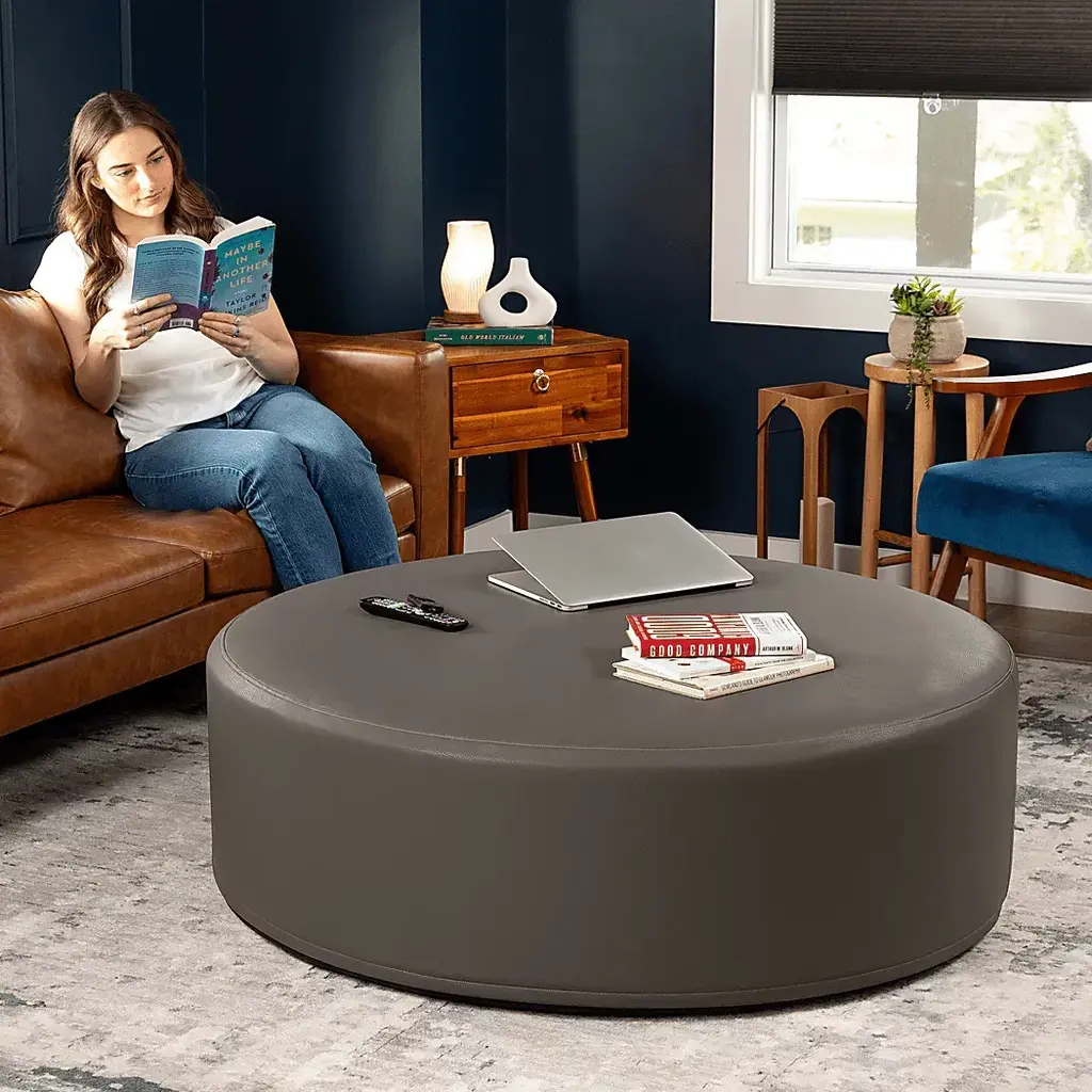 Elevate your style with the versatile Bevina I Ottoman, a safe and functional centerpiece for modern living. Standing at the perfect coffee table height of 16 inches, this multifunctional ottoman is part bench, part coffee table, and part ottoman. Handcrafted from sturdy, solid, furniture-grade foam with no hard edges, it is designed to keep kids and adults safe during daily use. Perfect for drinks, notebooks, and games, it effortlessly doubles as a footrest, extra seating, or a stylish coffee table centerpiece. Its chic design seamlessly integrates into any living space while providing peace of mind for families. The removable, machine-washable boucle cover and easy-to-clean faux leather option ensure practicality without compromising style. Cozy yet chic, the ottoman is the ultimate companion for refined relaxation and family-friendly living.