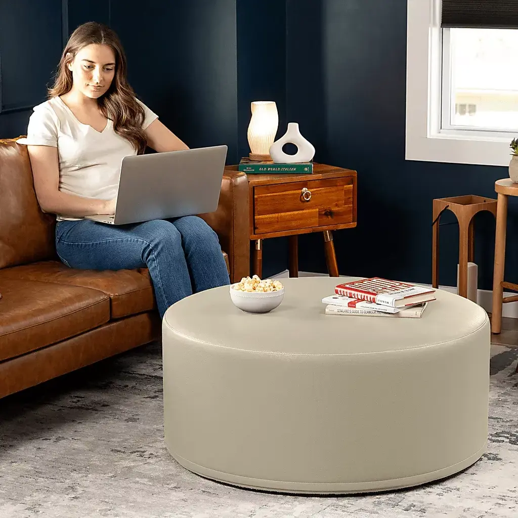 Elevate your style with the versatile Bevina I Ottoman, a safe and functional centerpiece for modern living. Standing at the perfect coffee table height of 16 inches, this multifunctional ottoman is part bench, part coffee table, and part ottoman. Handcrafted from sturdy, solid, furniture-grade foam with no hard edges, the Bevina I is designed to keep kids and adults safe during daily use. Perfect for drinks, notebooks, and games, it effortlessly doubles as a footrest, extra seating, or a stylish coffee table centerpiece. Its chic design seamlessly integrates into any living space while providing peace of mind for families. The removable, machine-washable boucle cover and easy-to-clean faux leather option ensure practicality without compromising style. Cozy yet chic, the ottoman is the ultimate companion for refined relaxation and family-friendly living.